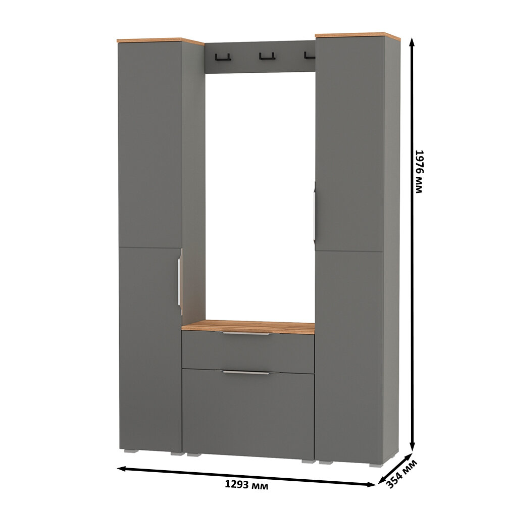 Купить Октава Прихожая 19, цвет серый графит/дуб крафт золотой/фасады МДФ серый графит