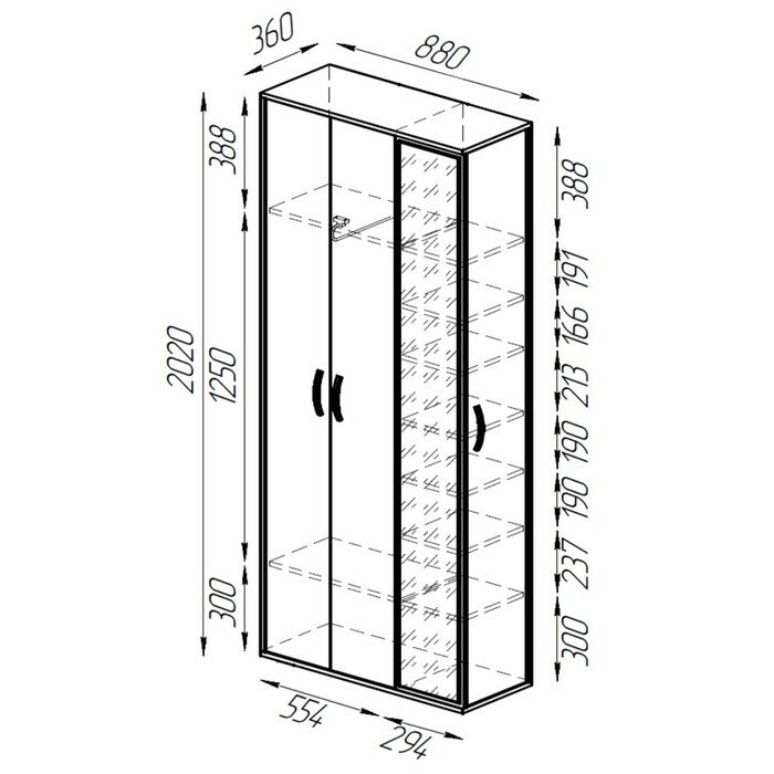 Прихожая комплект САША-6 (правая) от Фант-Мебель, с зеркалом, с обувницей, шкафом и ящиками, 156x203,6x43 см. Ясень темный/Ясень светлый