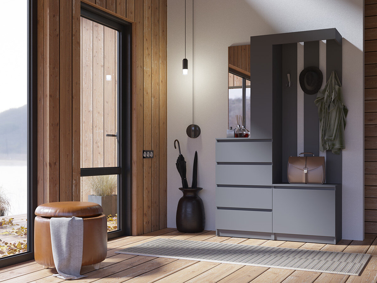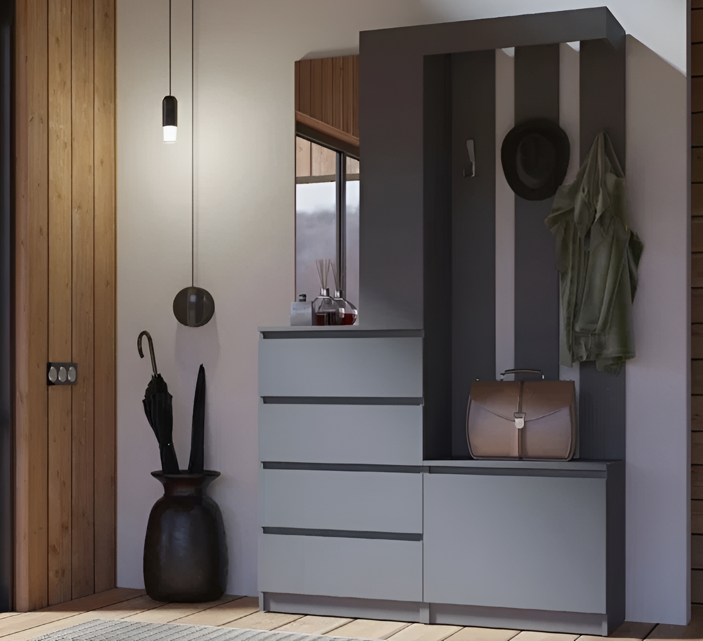 Купить Прихожая Челси Графит/Графит Миф/ Прихожая с 4-мя ящиками и зеркалом 120х200х37,8 см