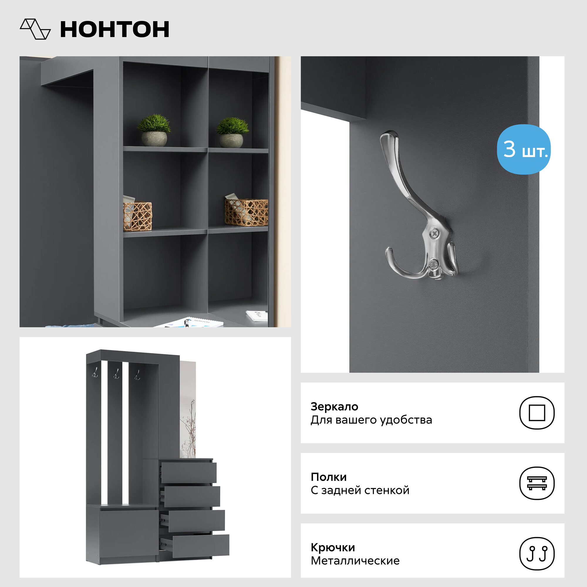 Прихожая с зеркалом Нонтон Челси графит, 120х37.8х200 см