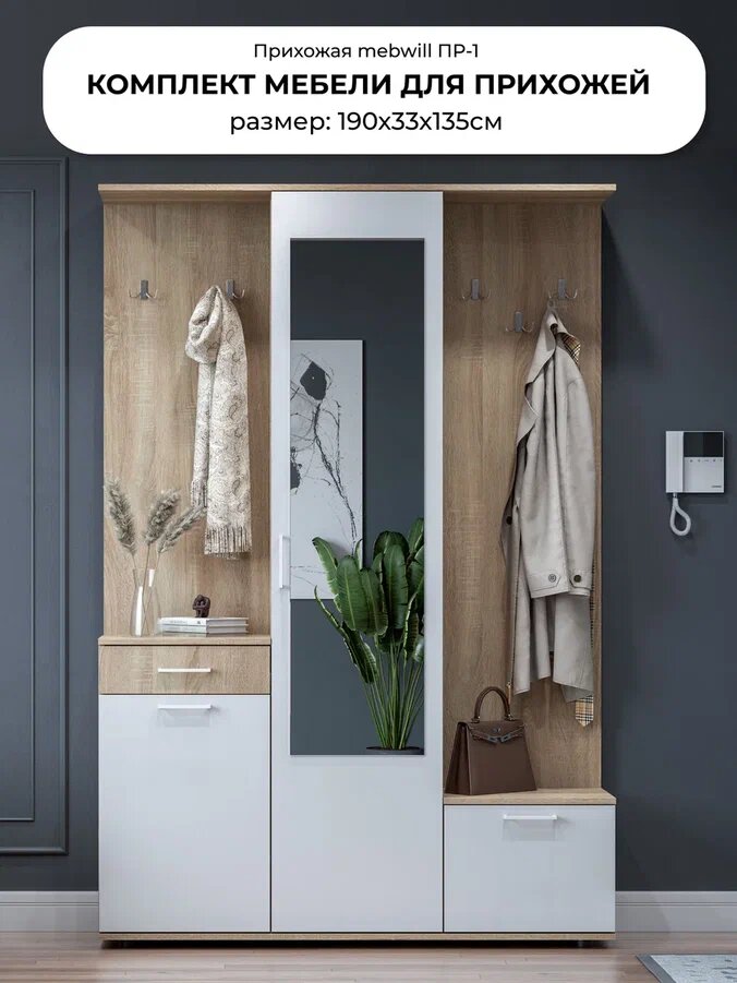 Стенка для прихожей sv-мебель ПР 1, цвет: дуб сонома/белый/фурнитура: белый интересное:
