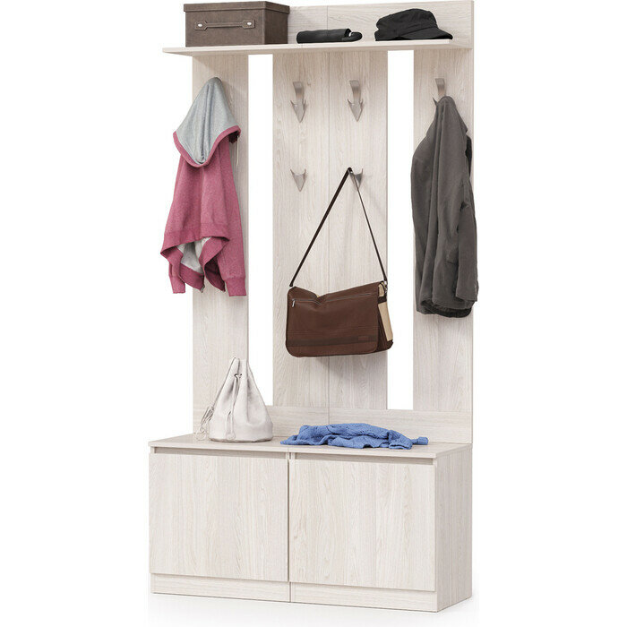 Тумбы с вешалками для верхней одежды Ника, цвет ясень анкор светлый, ШхГхВ 107,6х38,1х207,9 см., универсальная сборка интересное: