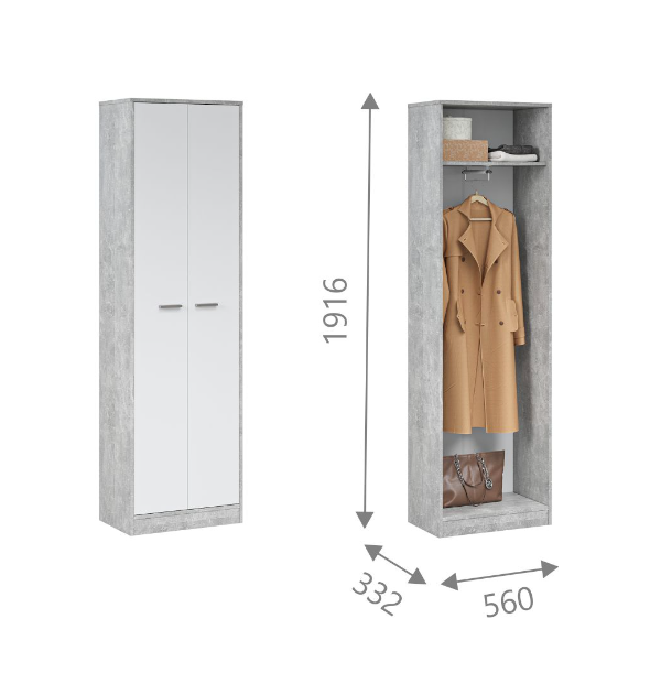Шкаф распашной МебельЛэнд24 Лайт-2 с антресолью Графит 70x70x220 серый для одежды двухдверный