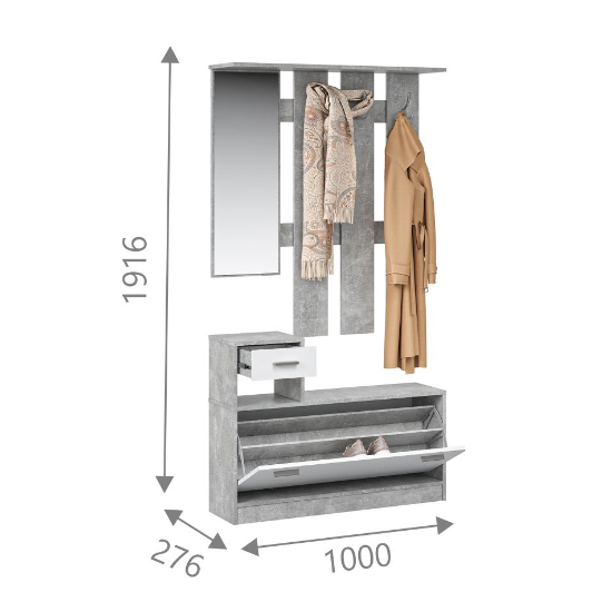 Купить Прихожая Интер со шкафом, тумбой, вешалкой ателье светлый белый ШГВ 156х33х191.5 см