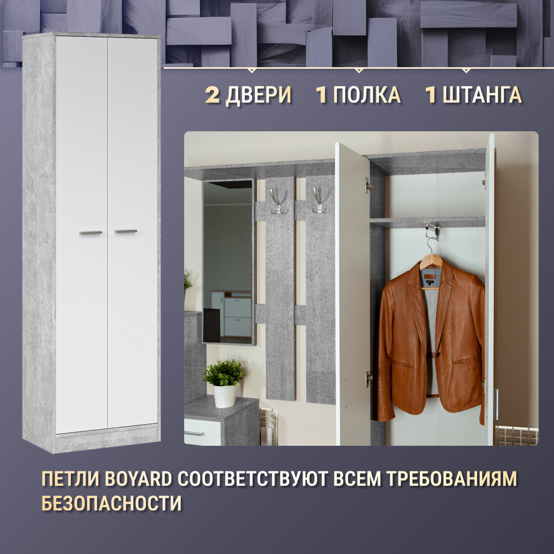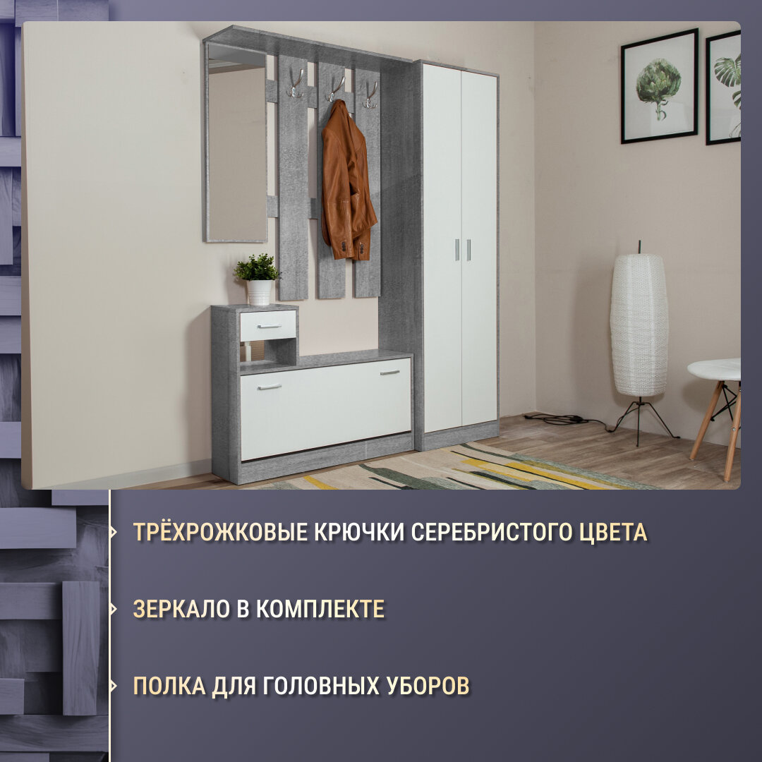 Прихожая Интер со шкафом, тумбой, вешалкой ателье светлый белый ШГВ 156х33х191.5 см интересное:
