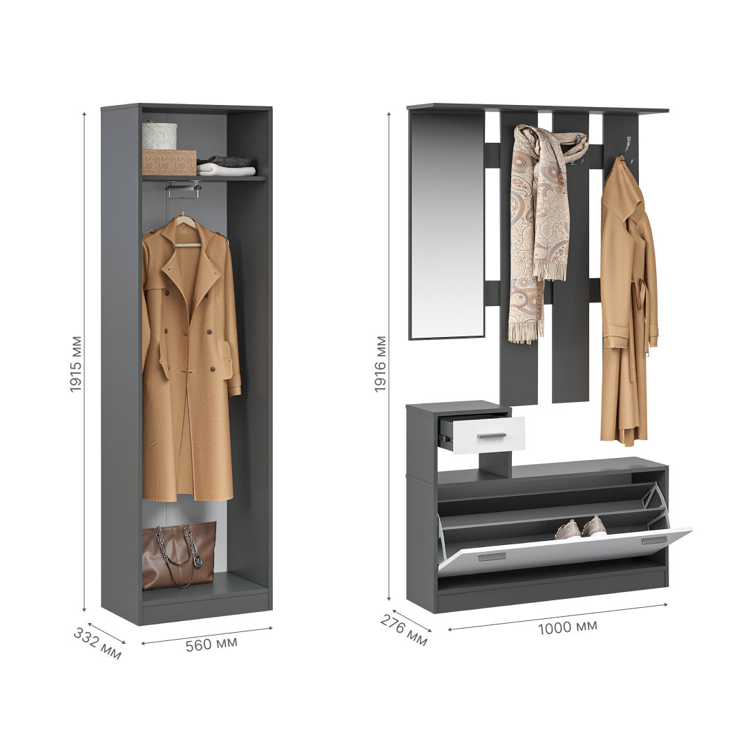 Ниже Вы можете прочитать отзывы на Прихожая Интер со шкафом, тумбой, вешалкой антрацит белый ШГВ 156х33х191.5, ознакомится с подробными характеристиками, посмотреть интересные обзоры и фотографии на Прихожая Интер со шкафом, тумбой, вешалкой антрацит белый ШГВ 156х33х191.5.