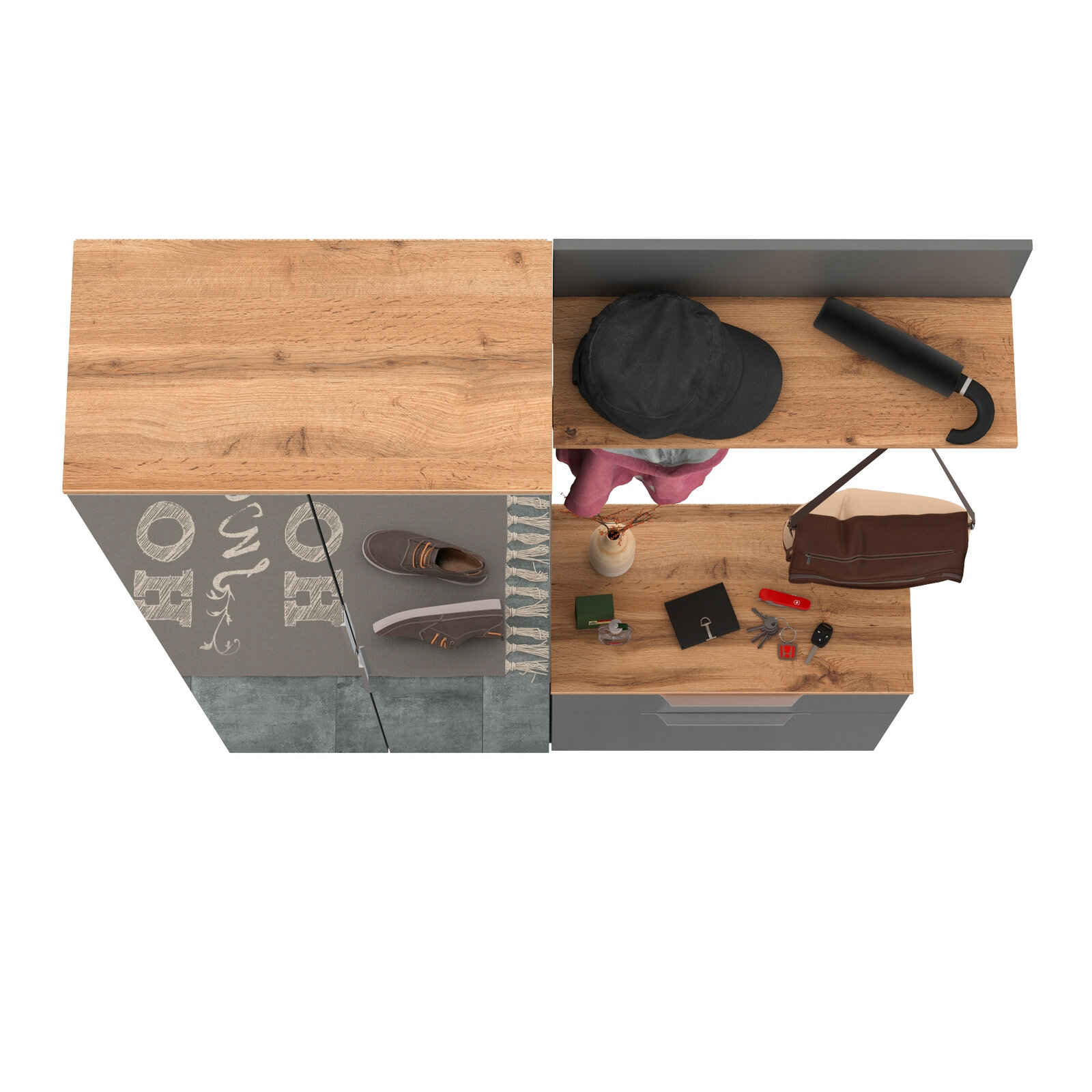 Комплект мебели для прихожей Флэш (comp.5) Браш Графит/Дуб Крафт