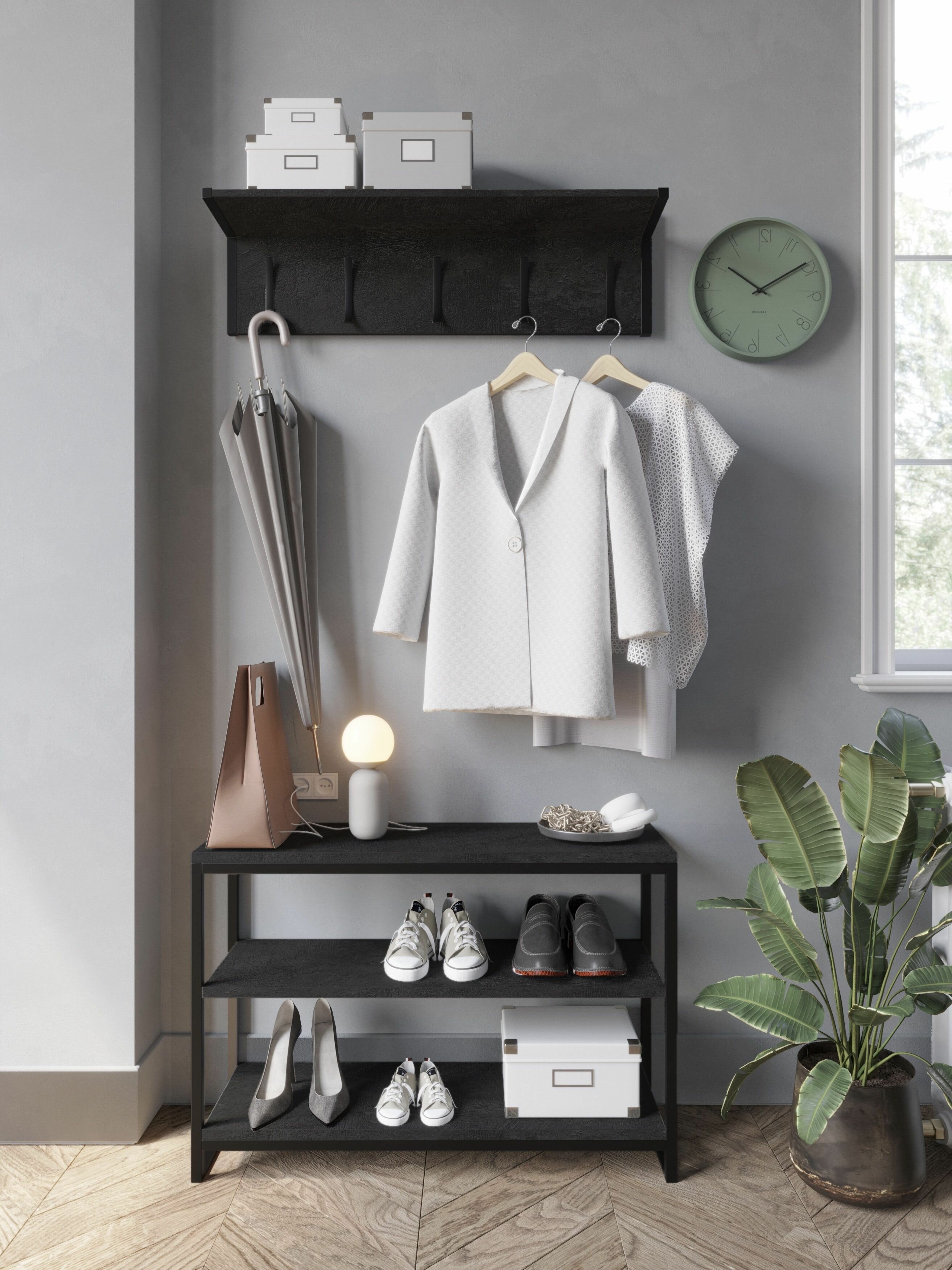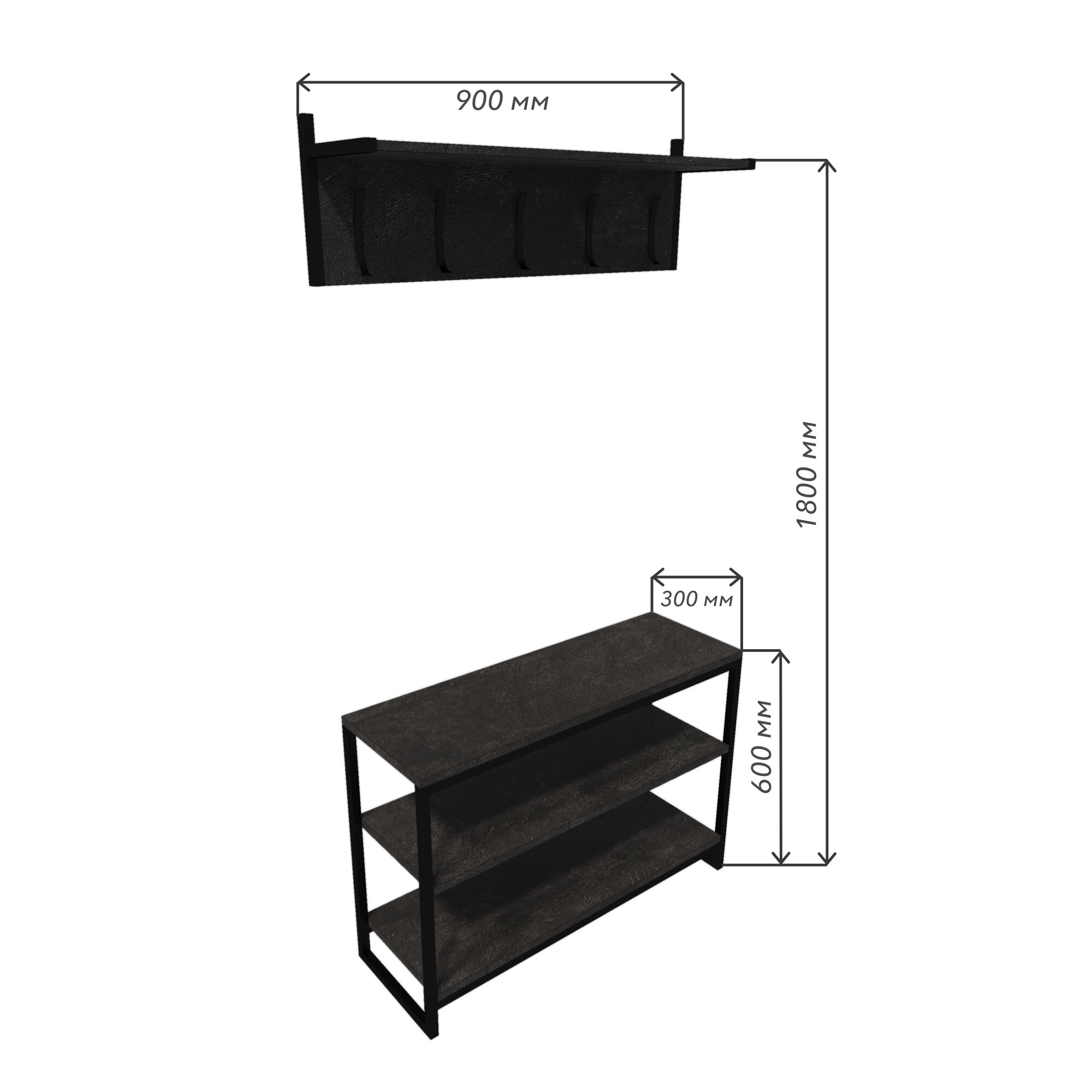 Купить Прихожая в стиле Лофт "Urban" 90x30х180 см. Цемент темный / Мебель для прихожей, полка для обуви, тумба для обуви, обувница, вешалка для одежды