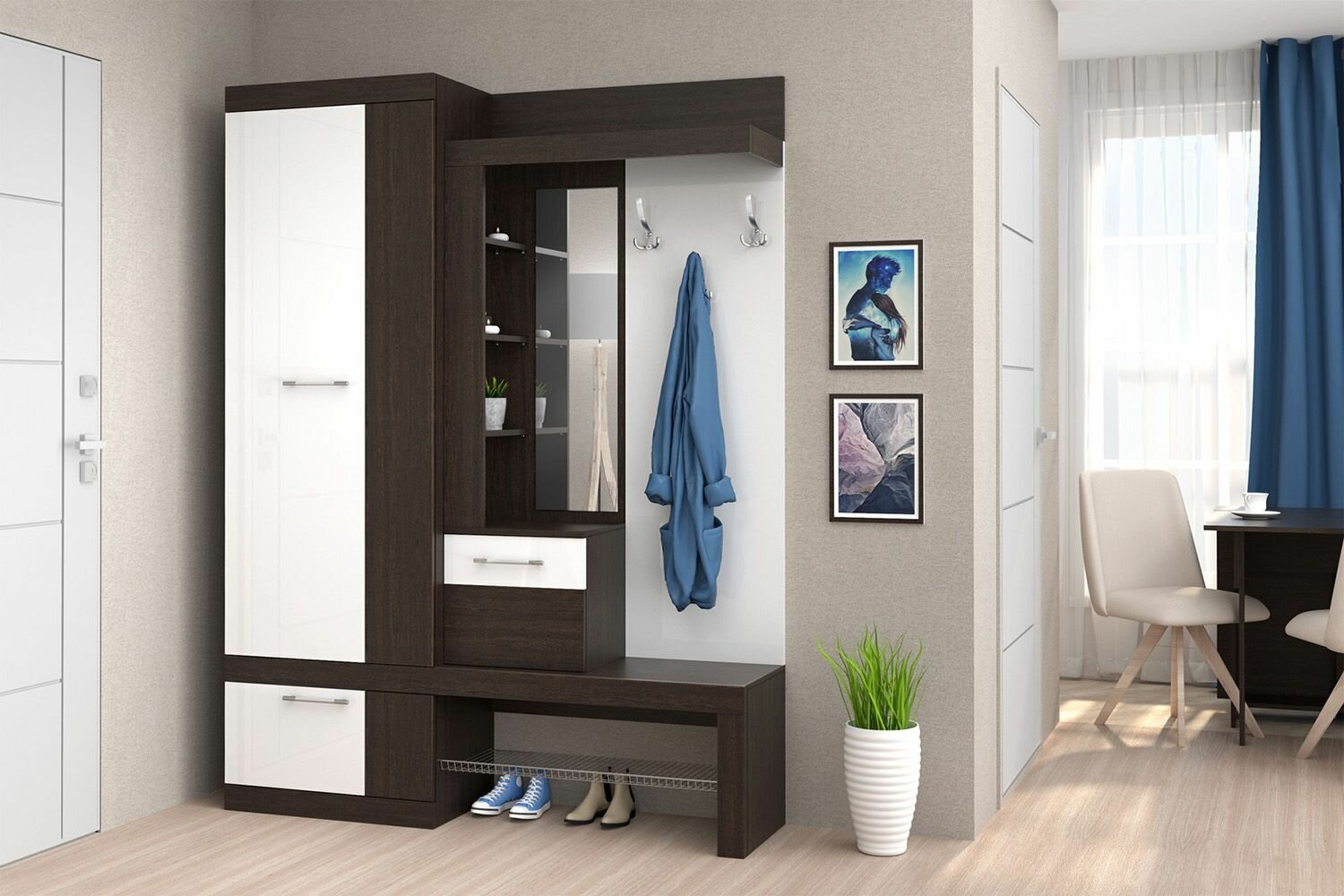Прихожая Дуэт, 1500х380х2000, Дуб венге/Белый глянец интересное: