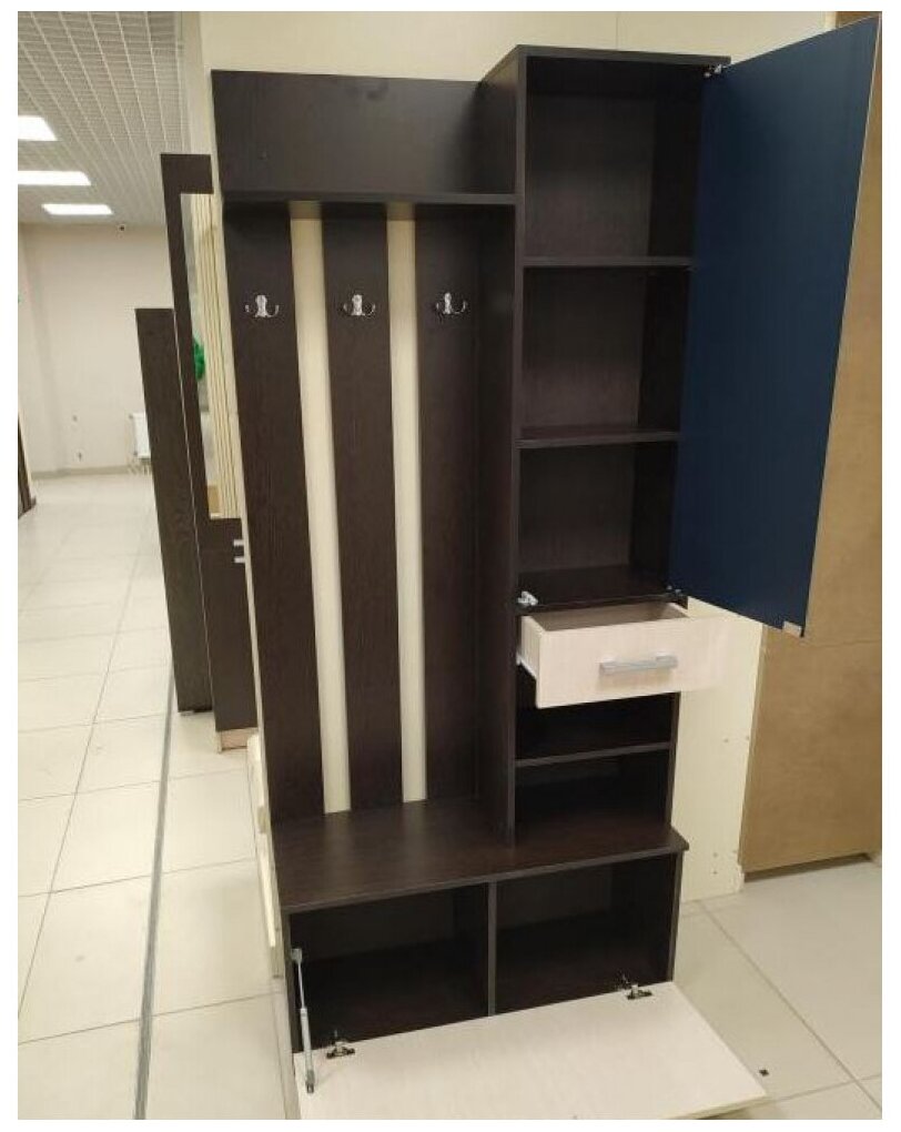 | Состав комплекта | каркас / 1 дверца / 1 зеркало / 3 полки / 1 ящик / 3 крючка / комплект фурнитуры / инструкция |