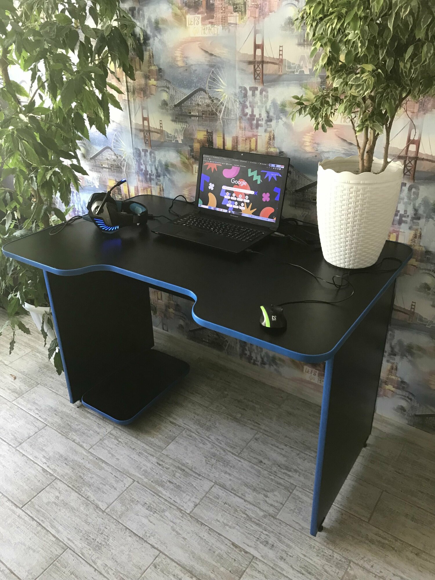 СохранитьКомпьютерный письменный стол ADRENALINE Игровой Геймерский Черный/Синий 110х75х78 интересное:
