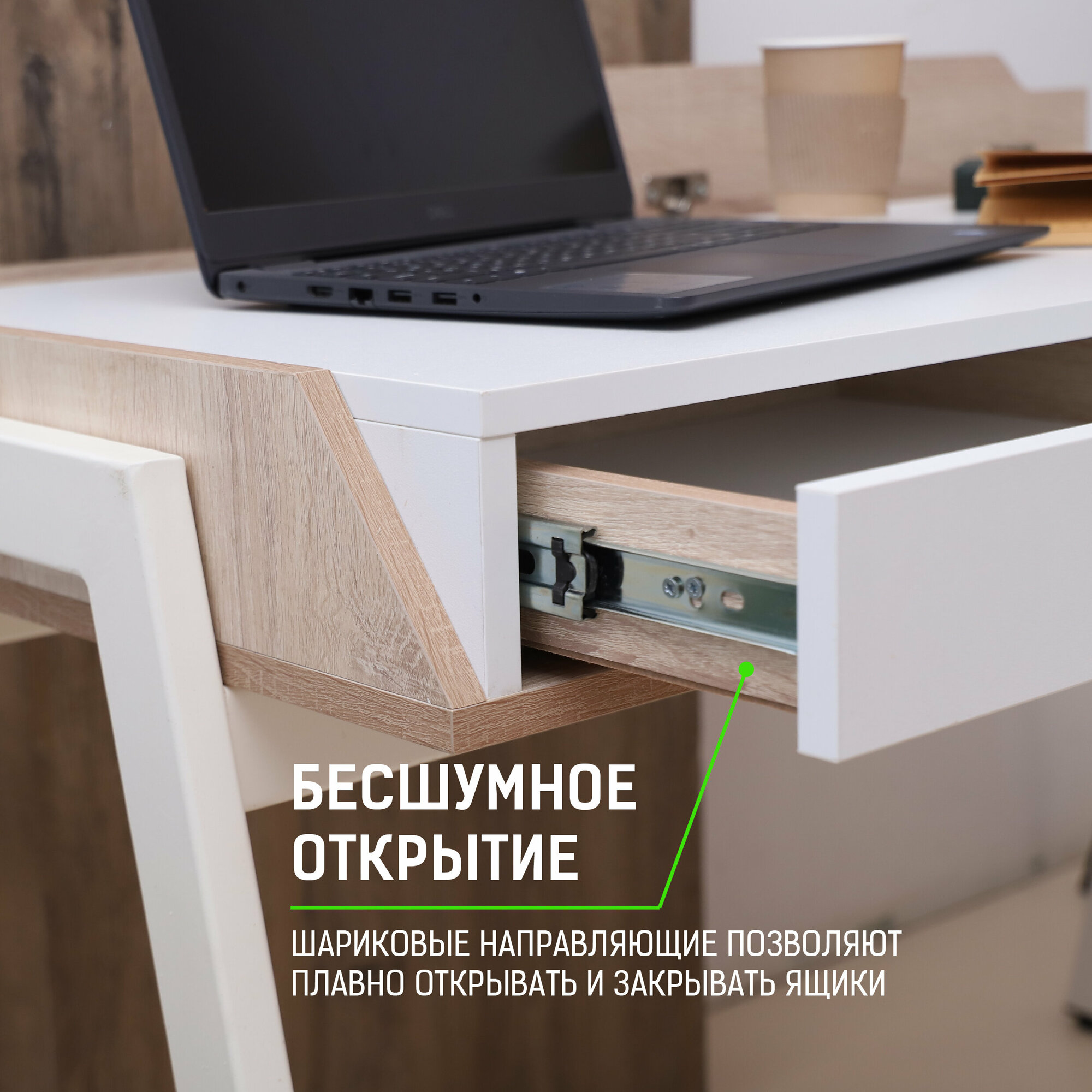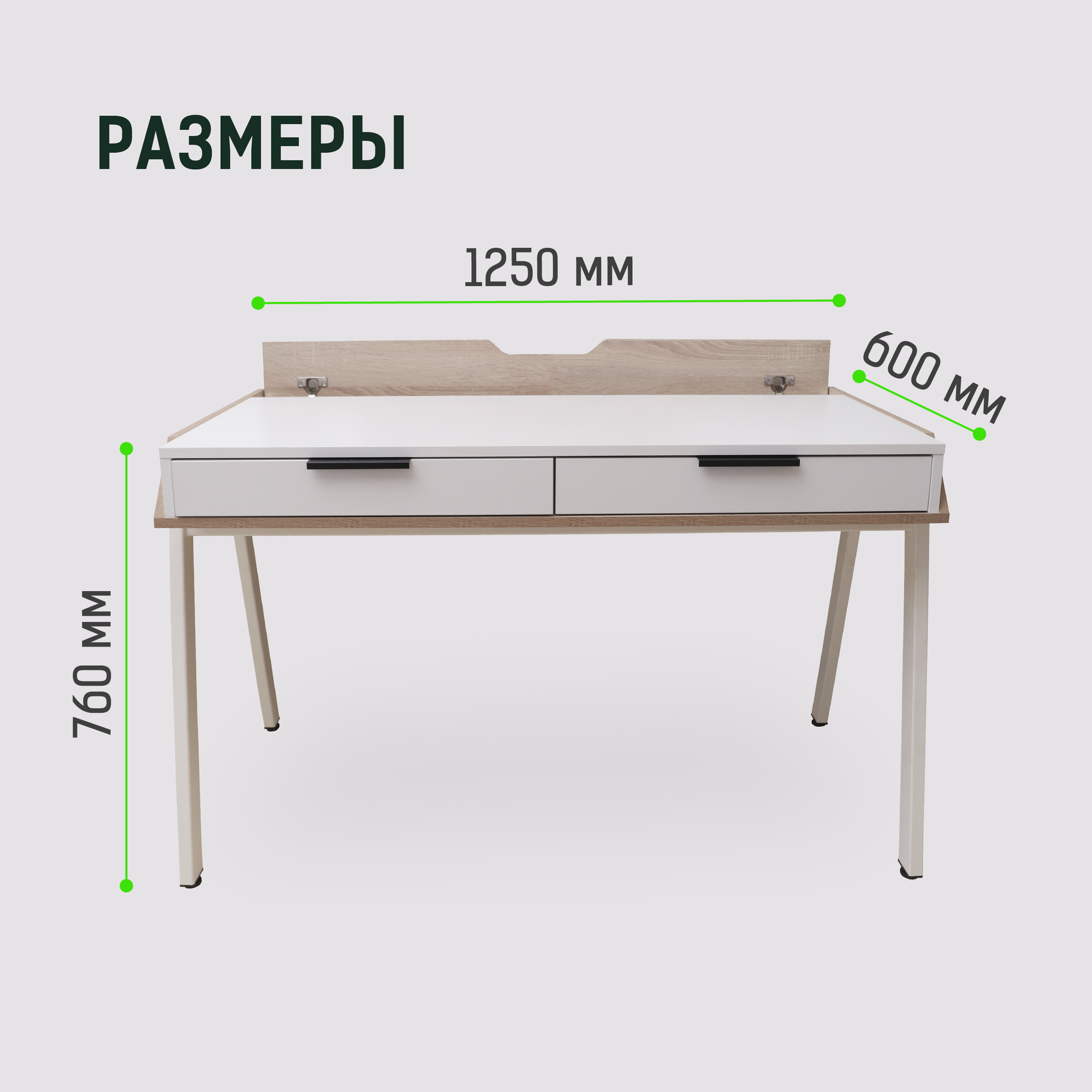 Стол компьютерный с ящиками Acon (Белый) / Письменный стол 125х60х76 см. / Офисный стол