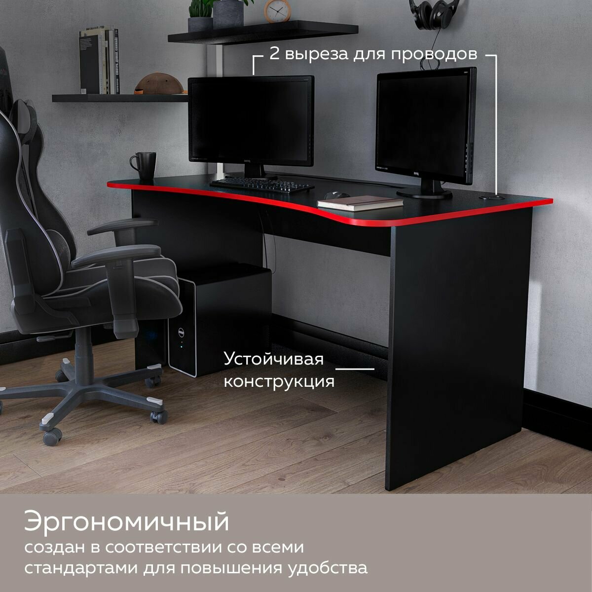 Купить Геймерский компьютерный стол, письменный стол SURF 1400 Черный/Красный, 140*71,6 см.