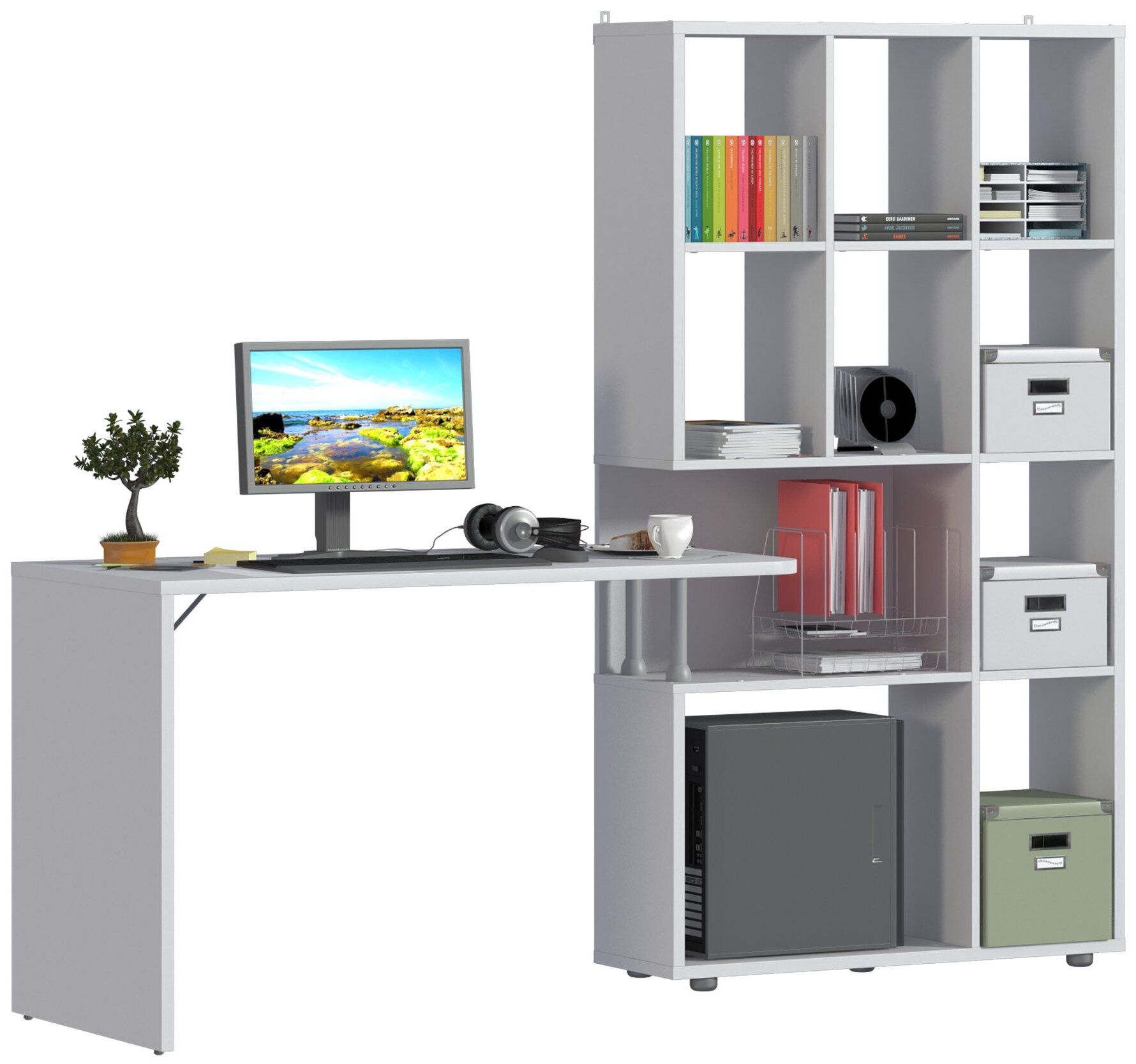 Купить Стол письменный компьютерный рабочий столплит Техно СБ-2303 со стеллажом, с полками, белый 198х164х60