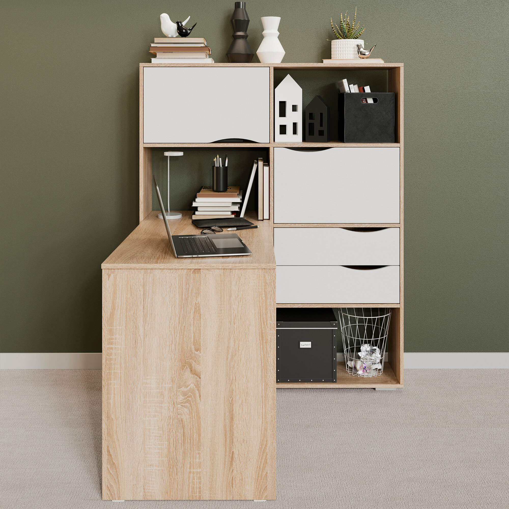 Письменный стол ТриЯ тип 7 белый ясень с ящиком и стеллажом, 115х110х143 см