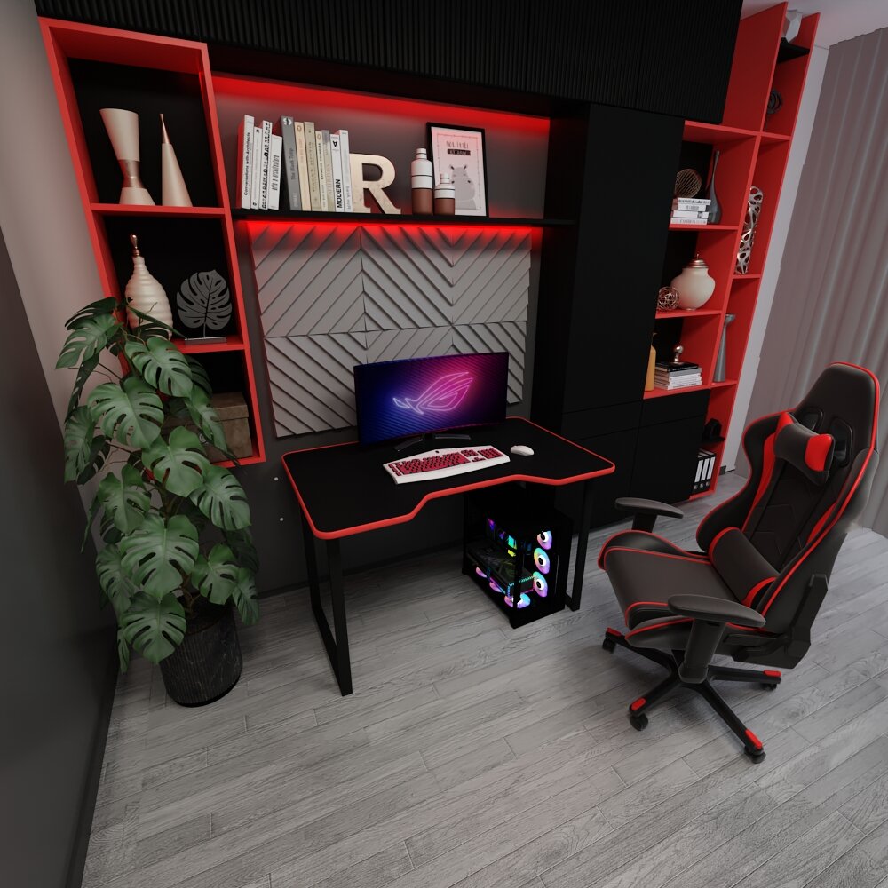 Компьютерный стол FREZKA "ECO PLUS", без ящиков, черный/красный, металл/ЛДСП, 100x72x75 см