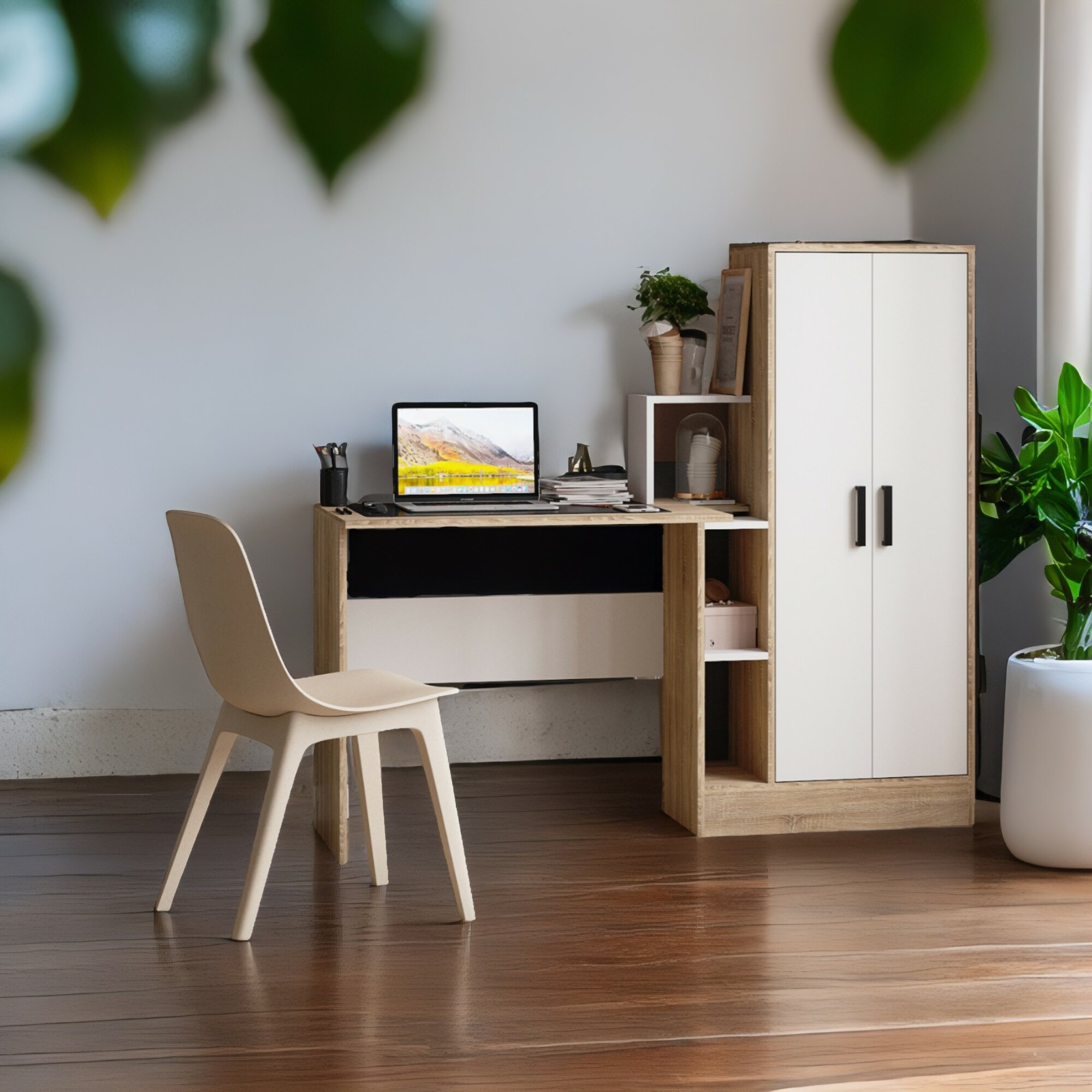 Купить Стол компьютерный с 2-х дверным шкафом и полками дуб сонома/белый
