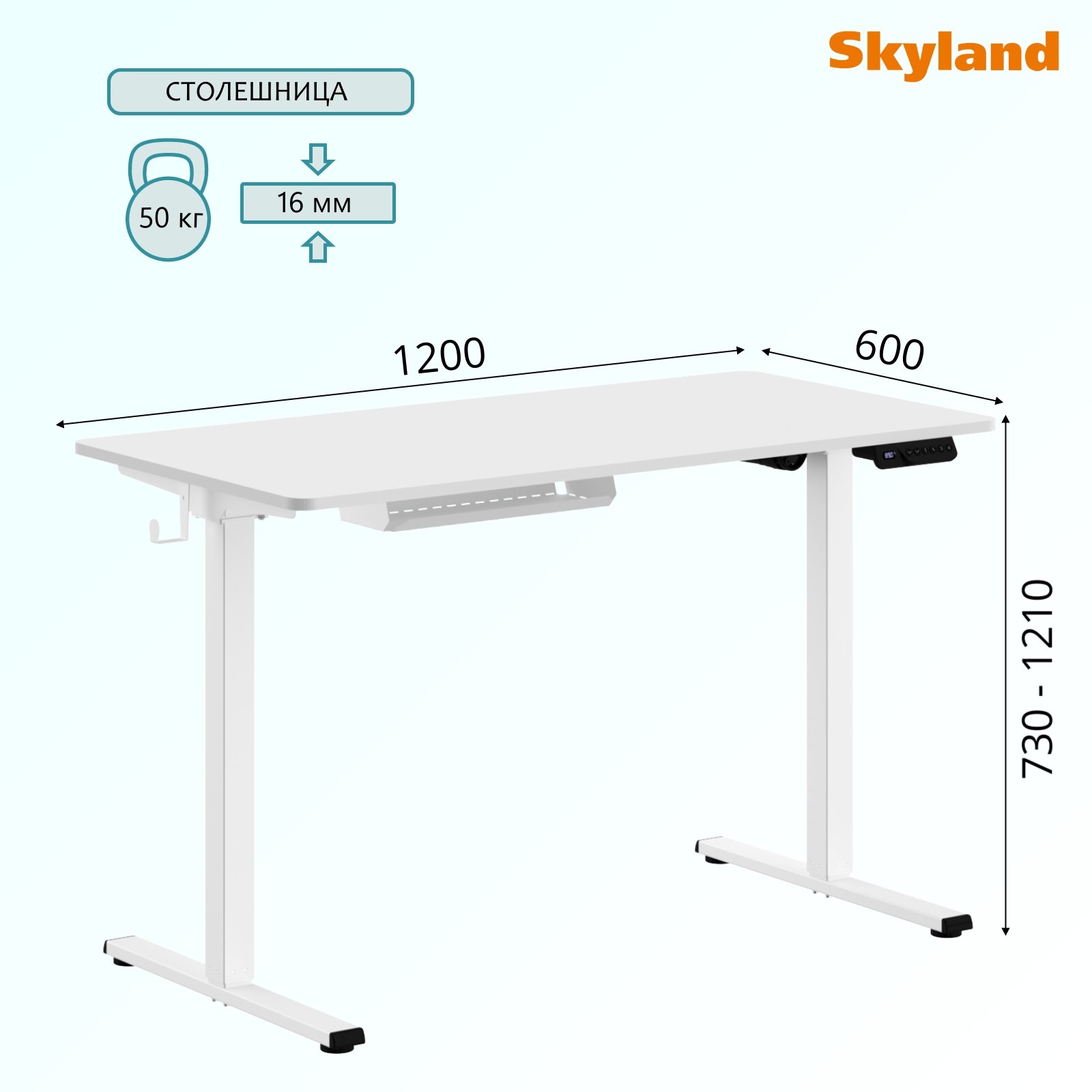 Купить Компьютерный стол с регулировкой высоты / письменный стол SKYLAND XTEN-UP AT-002, белый, 1200х600х730/1210