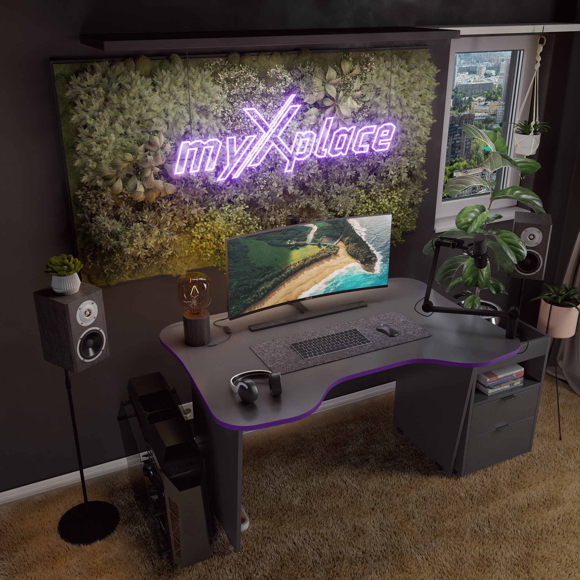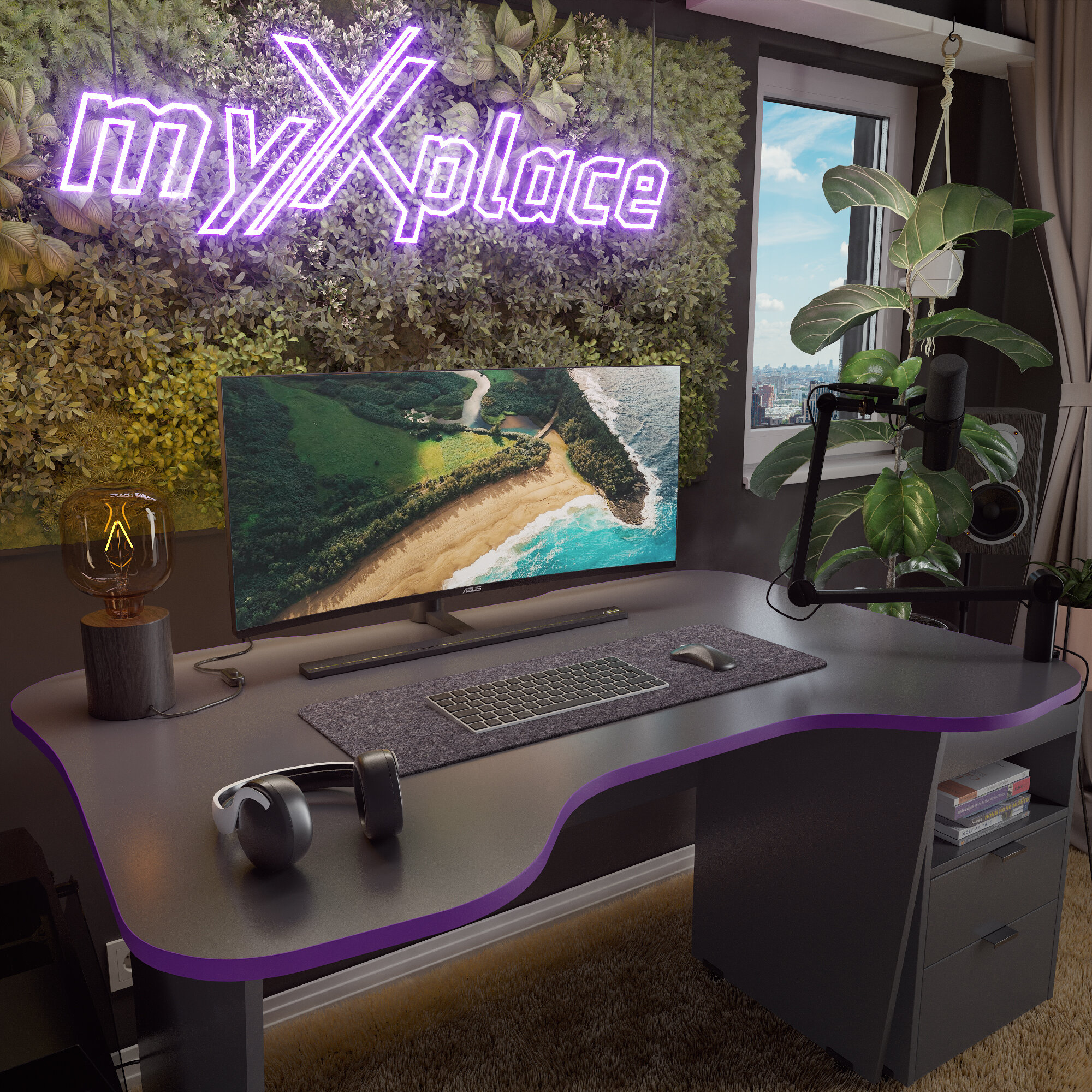 Купить Игровой компьютерный стол FLY, Графит-фиолетовый