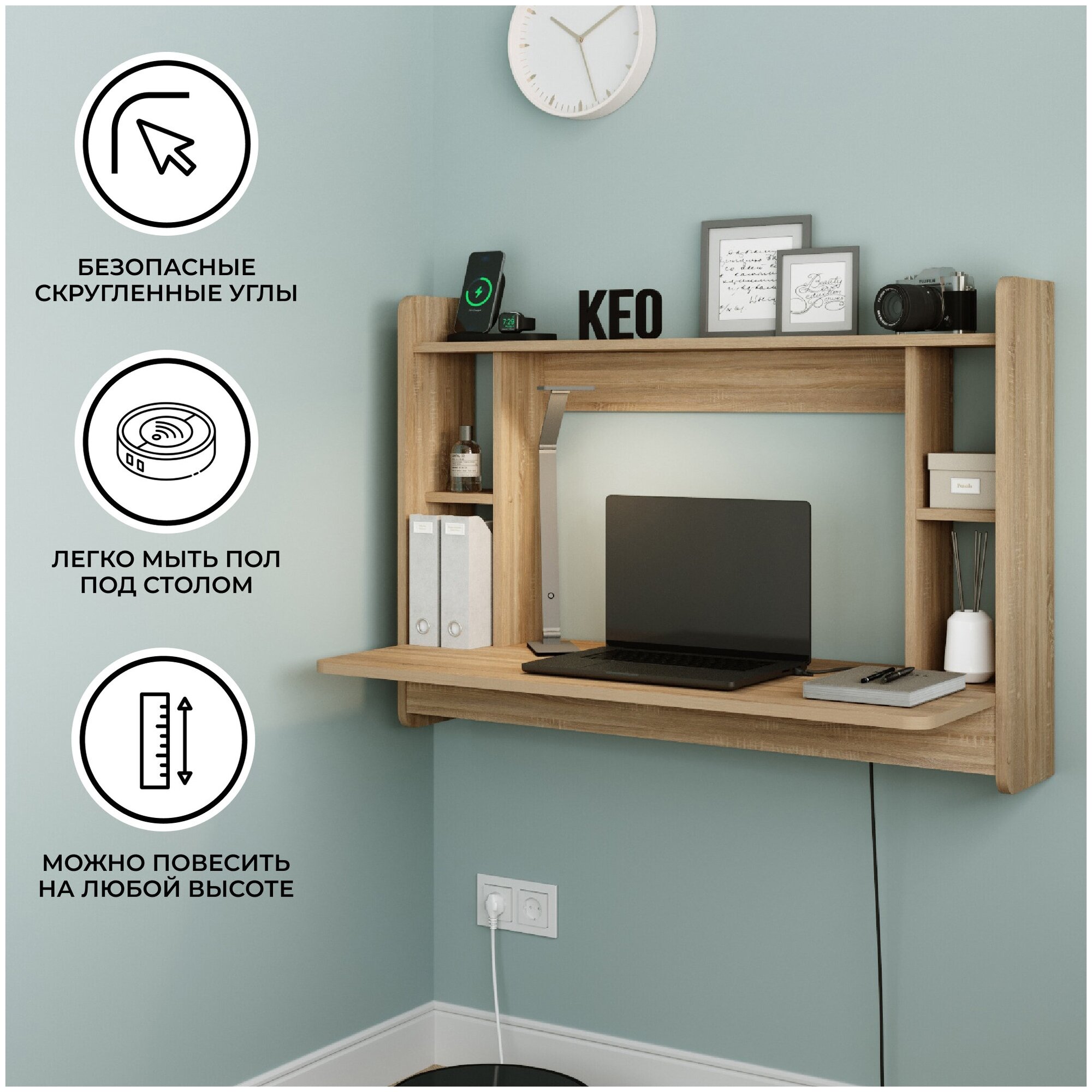 Купить Стол навесной (подвесной) с полками компьютерный для ноутбука Кео СТМ-5 сонома