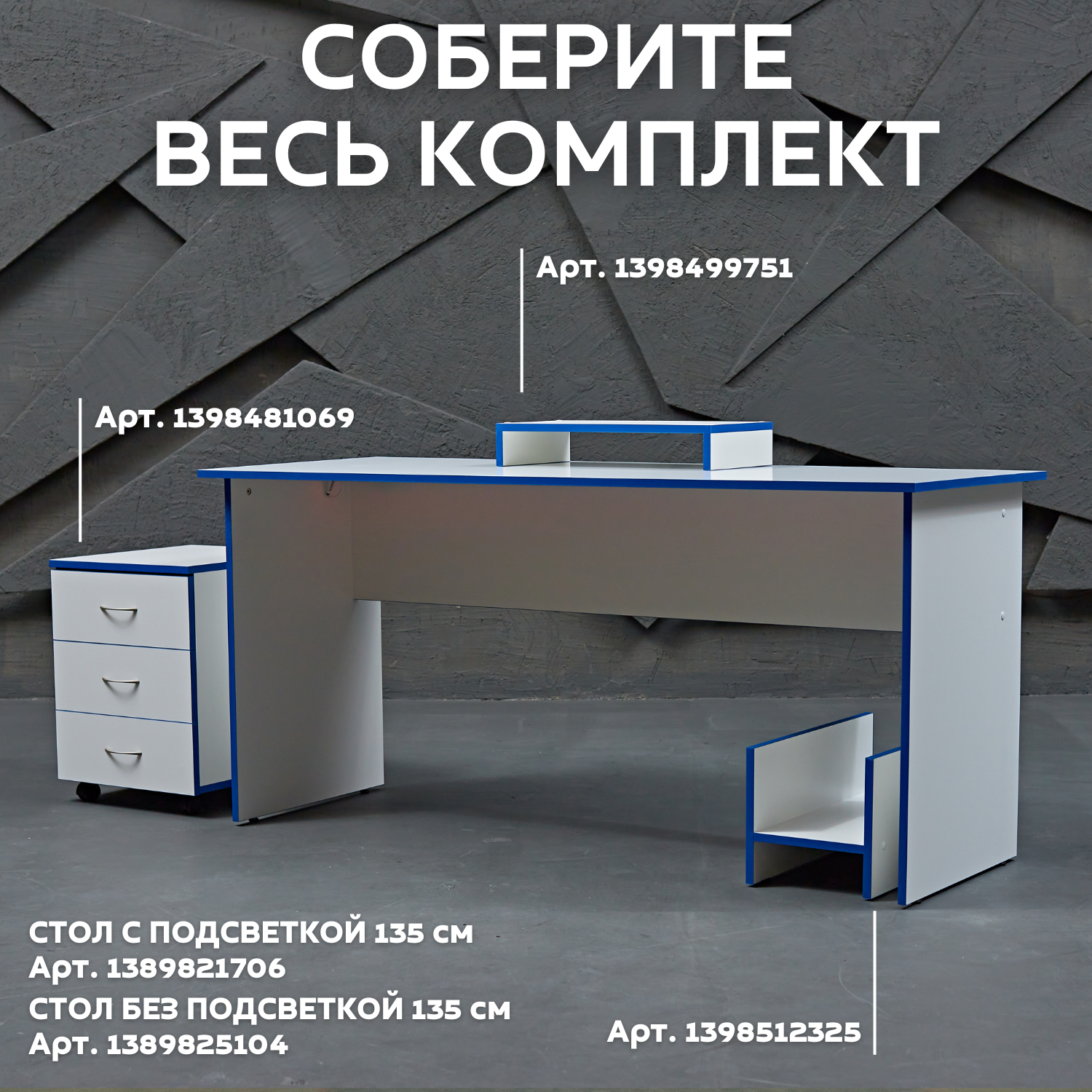 СохранитьСтол игровой геймерский с RGB подсветкой и пультом стол компьютерный офисный письменный, белый синий 135х60х75 интересное: