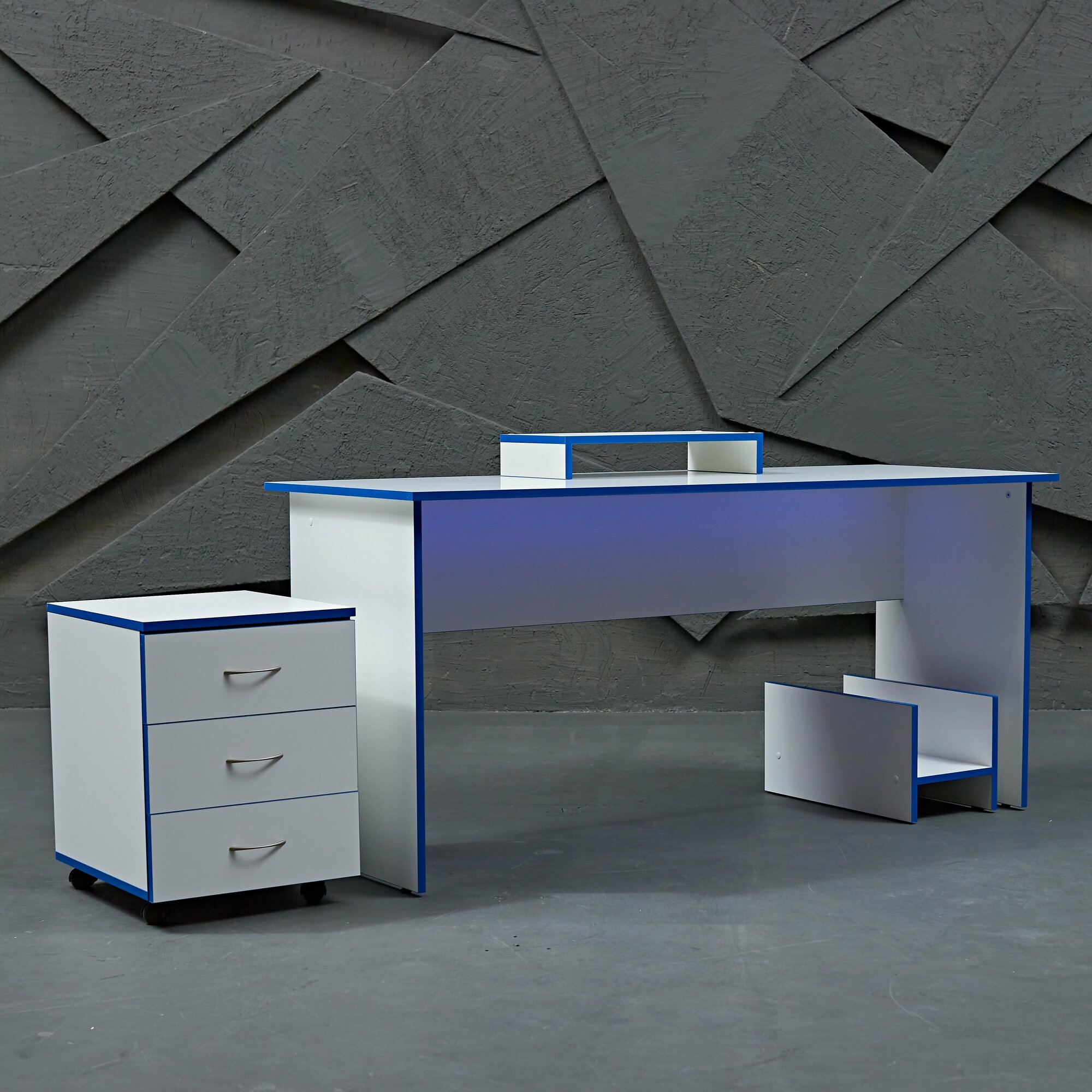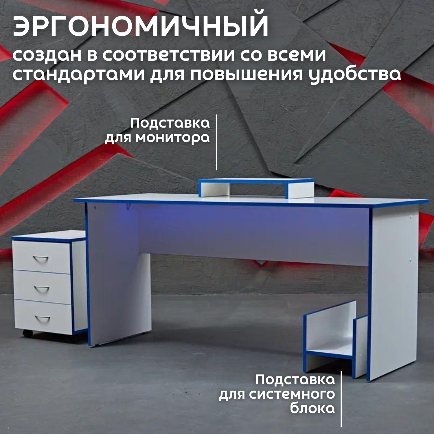 СохранитьСтол игровой геймерский с RGB подсветкой и пультом стол компьютерный офисный письменный, белый синий 120х60х75 интересное: