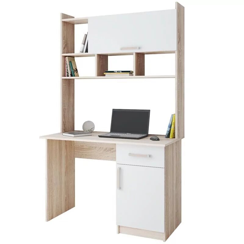 Стол компьютерный с надстройкой ТЭКС Квартет-10 цвет дуб сонома/белый