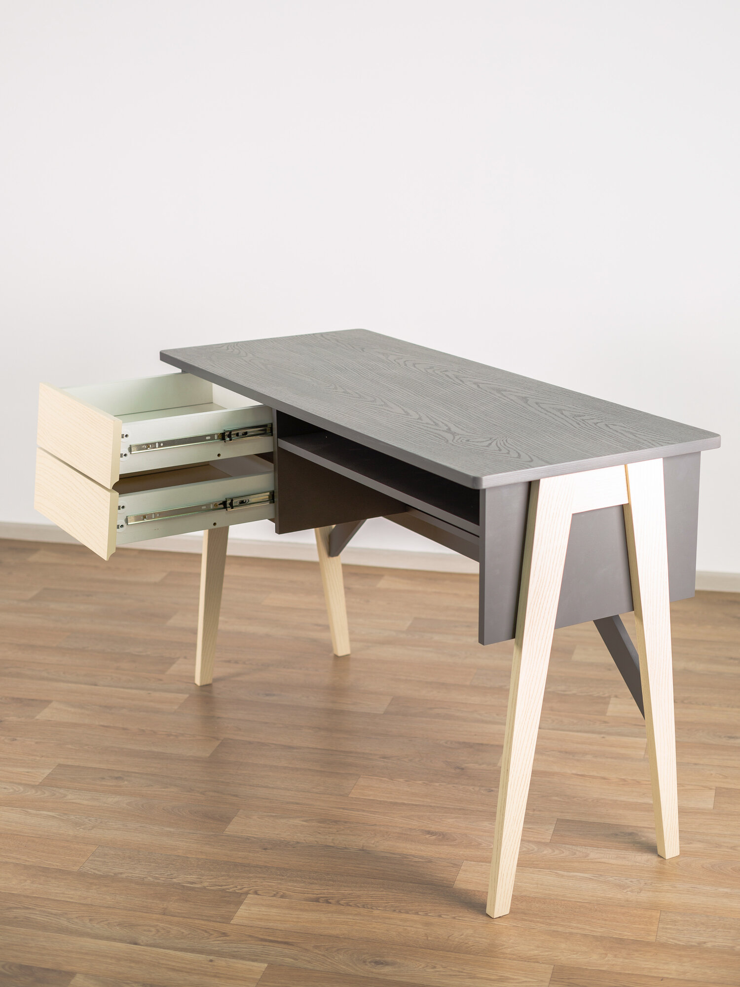 Стол письменный, игровой, компьютерный Glider Сканди, белый дуб/ серый ясень