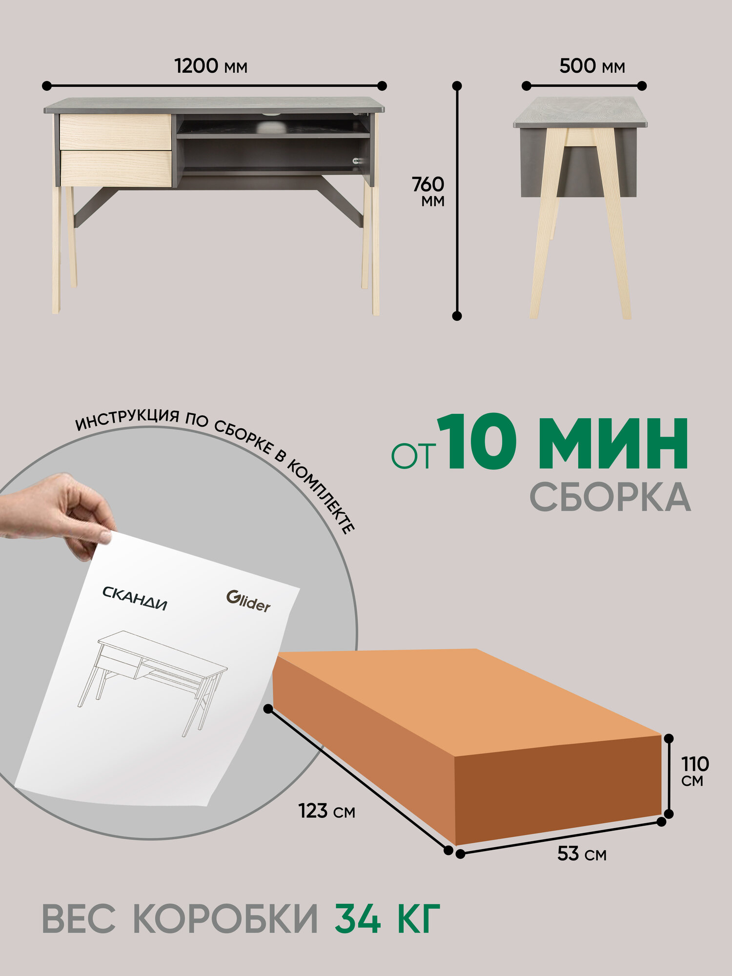Стол письменный, игровой, компьютерный Glider Сканди, бежевый / серый ясень интересное: