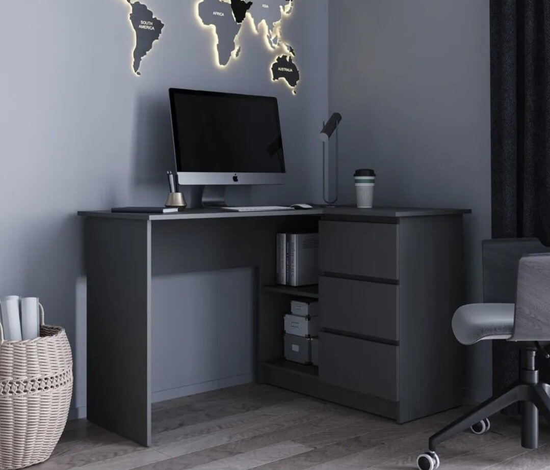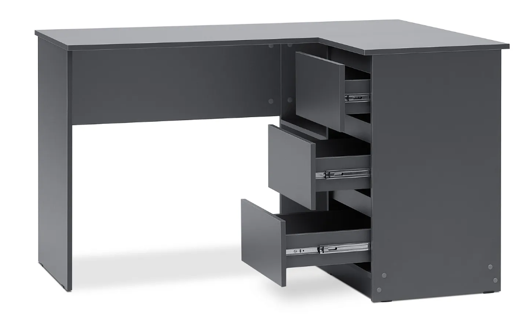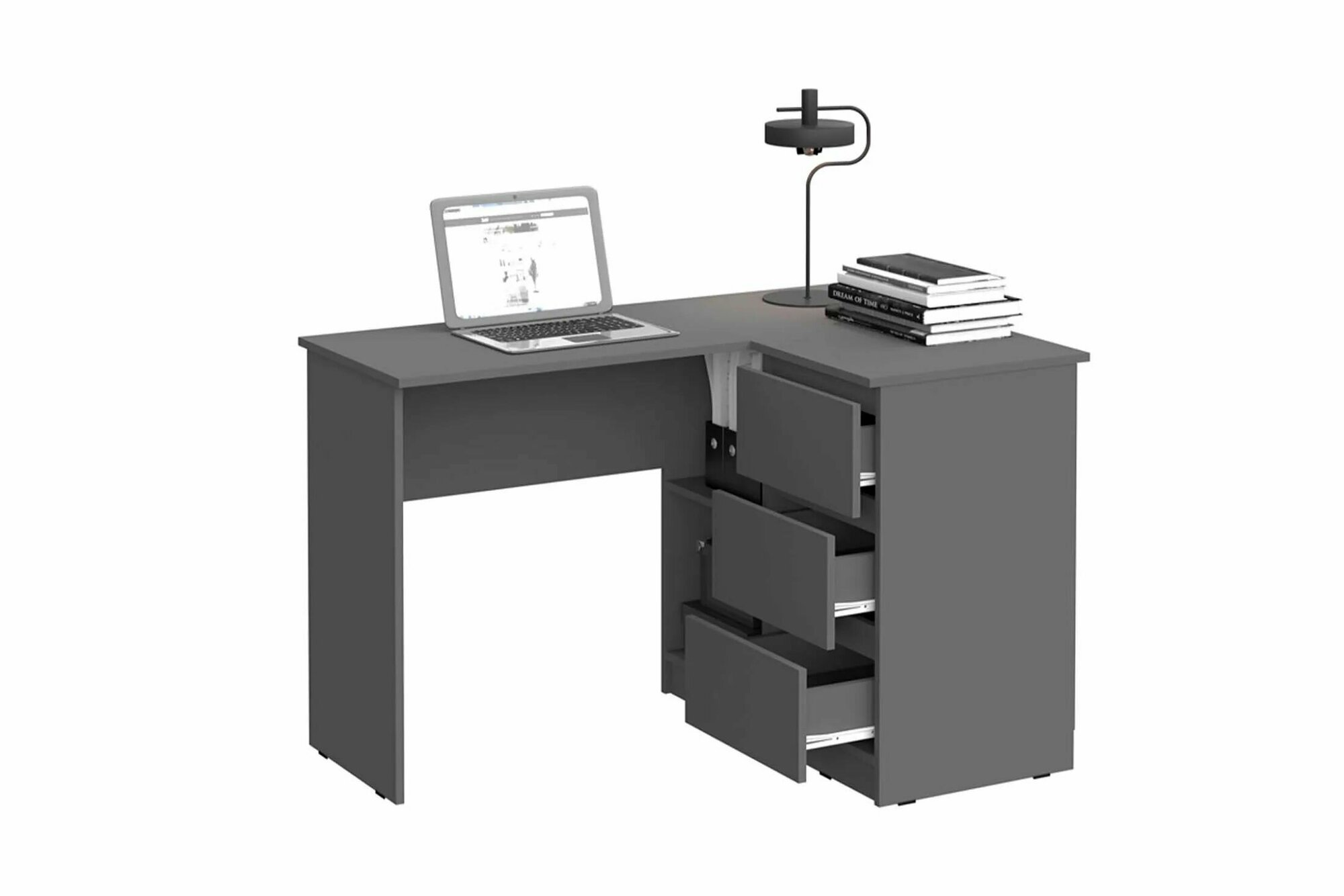 Купить Стол компьютерный Челси угловой с 3-мя ящиками, 130х76,8х90,4 см ЛДСП Графит, графит