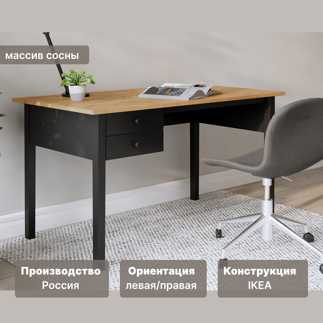 Письменный стол с ящиками вухтым (ARKELSTORP), 140x70x74 см, черный/светло-коричневый интересное: