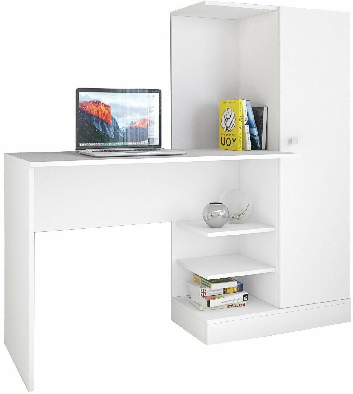 Компьютерный стол "Квартет-6", Белый с тиснением "Древесные поры", ЛДСП, с открытыми и закрытыми полками, для спальни, гостиной, детской, кабинета, 1350х1450х500, тэкс