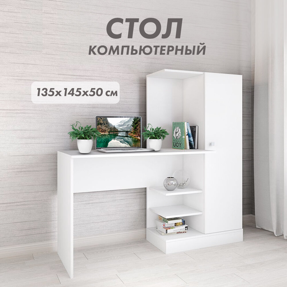 Стол компьютерный (1350х1450х500) белый