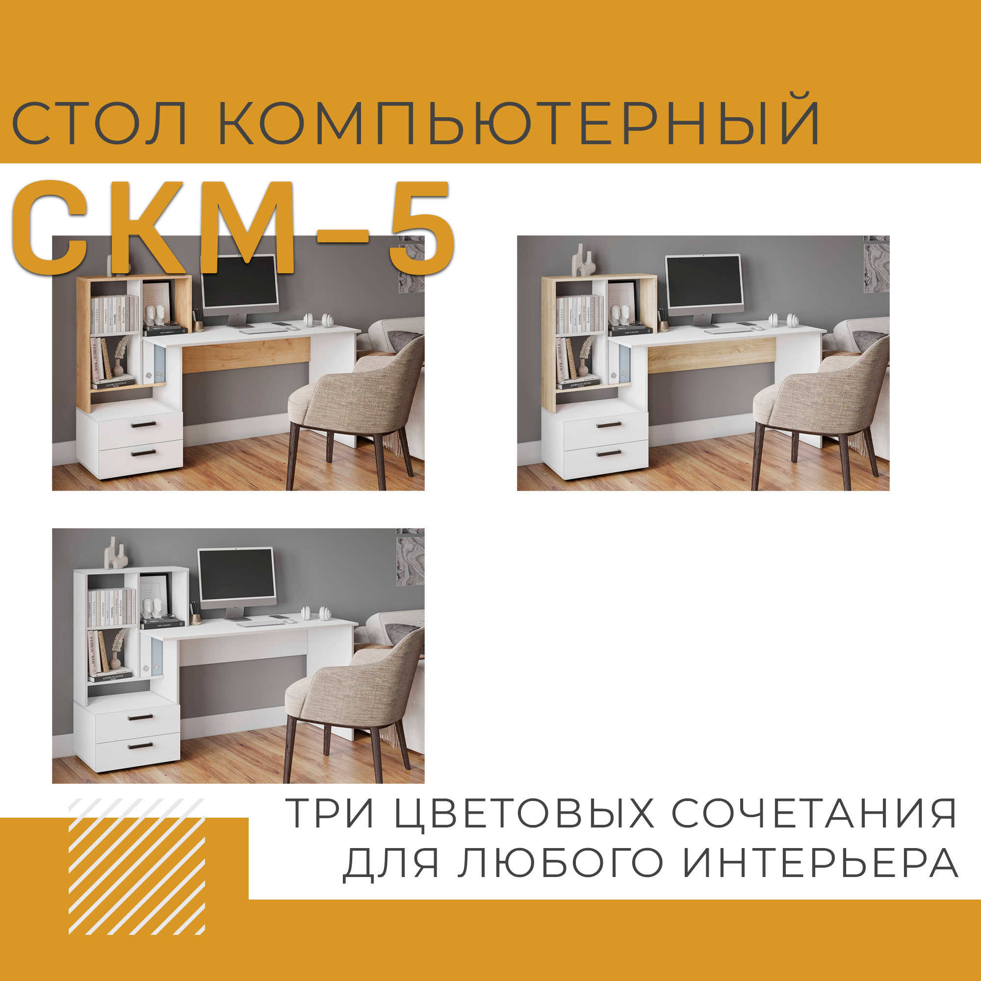 Компьютерный стол СКМ-5 белый/дуб крафт золотой