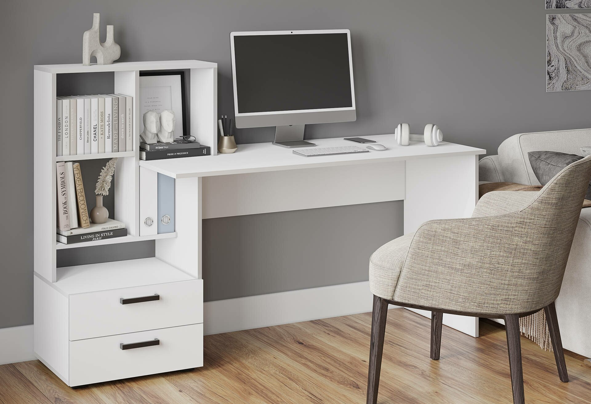 МС Мори Стол МС-6 левый Белый (компьютерный, письменный, с ящиками, для школьника, в офис)