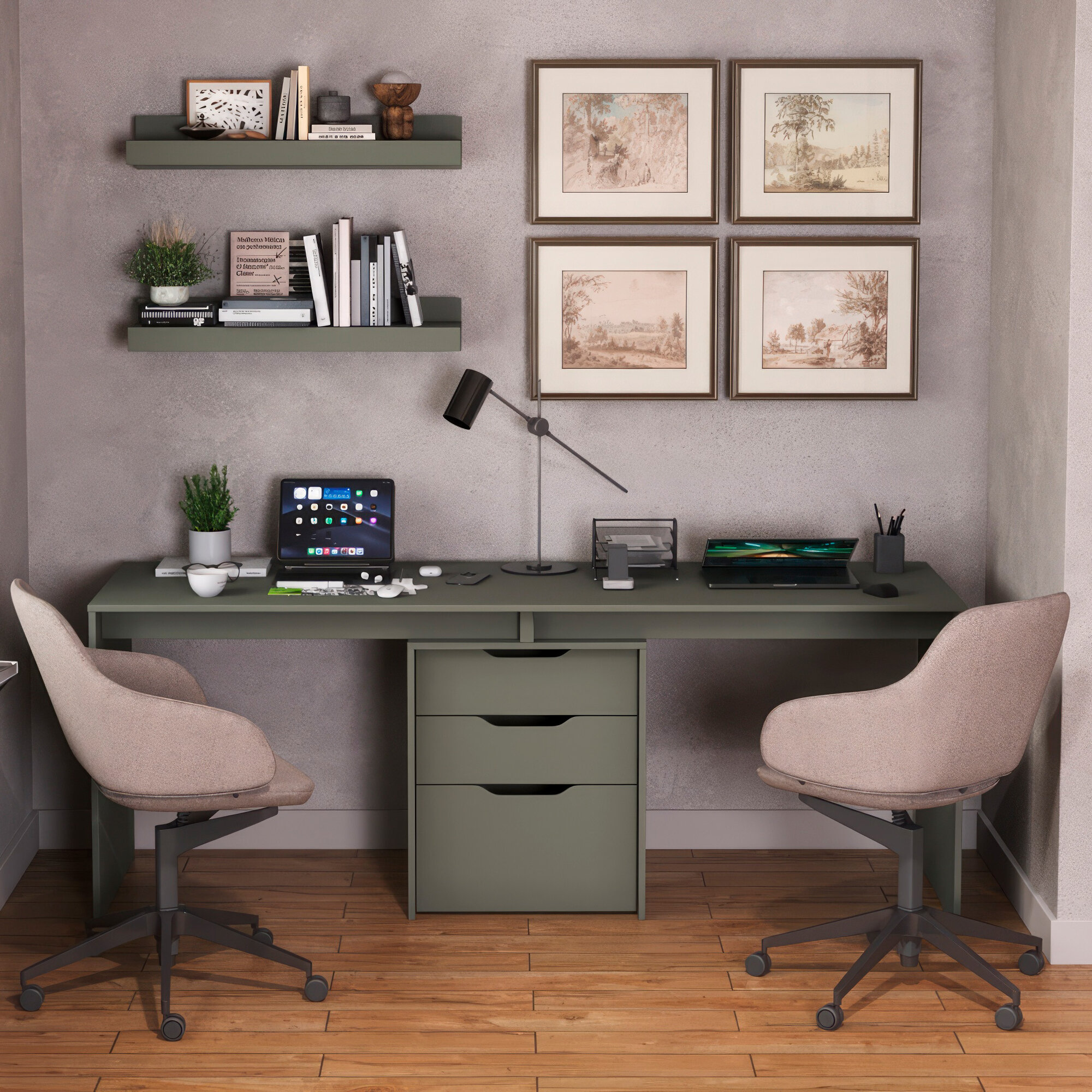 Купить Компьютерный стол для двоих, двойной, с тумбой, с ящиками, для офиса, для детской, Есэндвич grand Лаворо 180х60х75 см (Хаки)