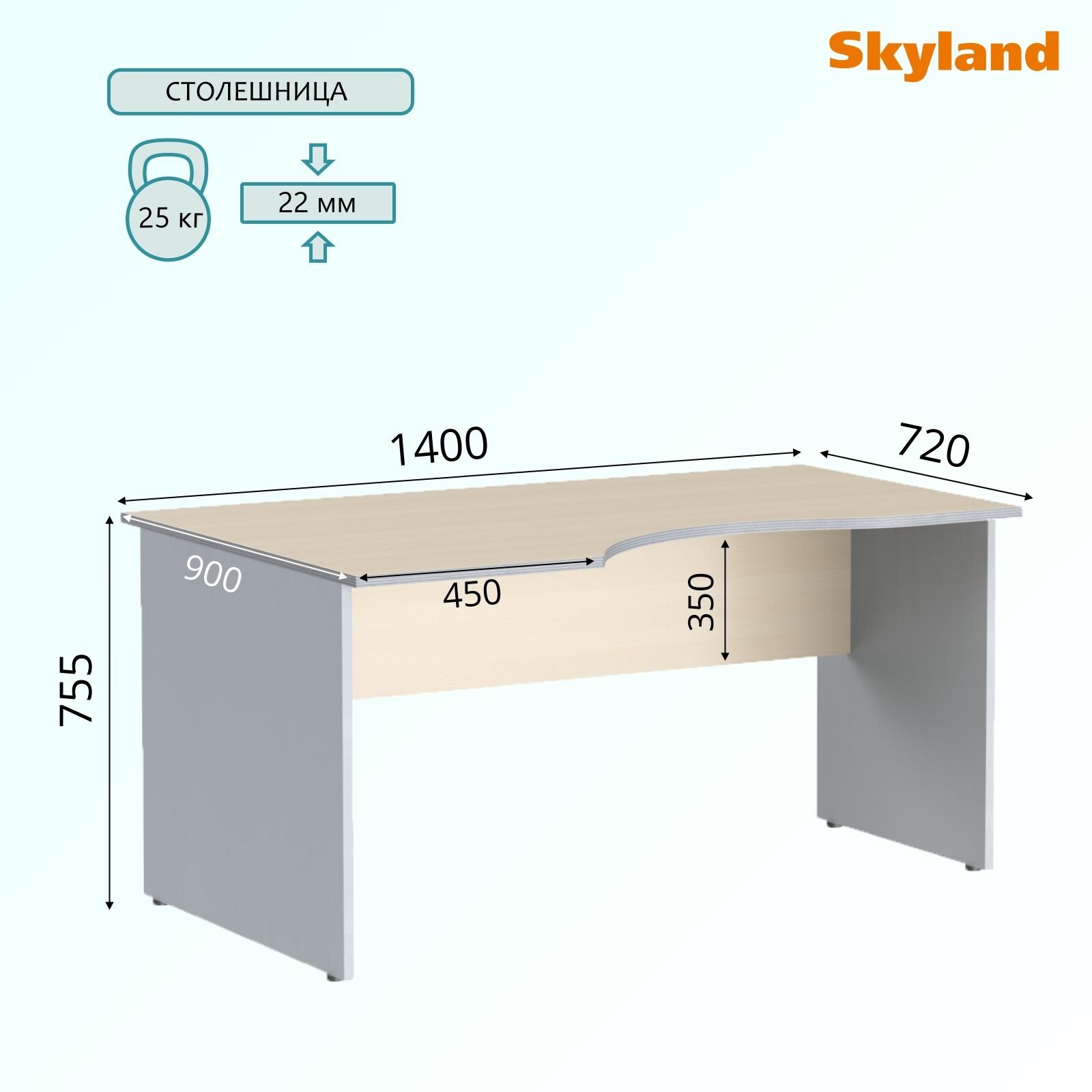 Стол письменный Skyland криволинейный СА-2Пр Беларусь Клен/Металлик 1400*900(720)*755 IMAGO