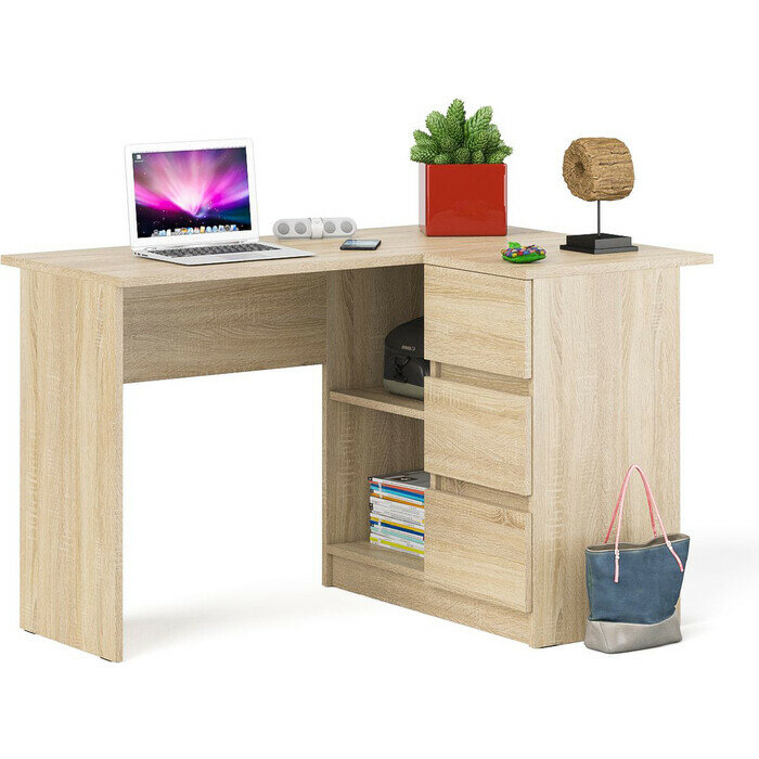 Стол компьютерный три ящика Мори МС-6 левый цвет дуб сонома, ШхГхВ 90х50х76,6 см, ящики слева, НЕ универсальная сборка