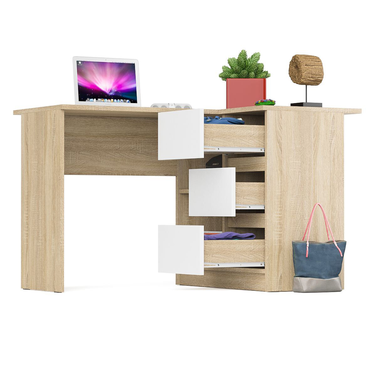 Стол компьютерный три ящика Мори МС-6 левый цвет дуб сонома/белый, ШхГхВ 90х50х76,6 см, ящики слева, НЕ универсальная сборка