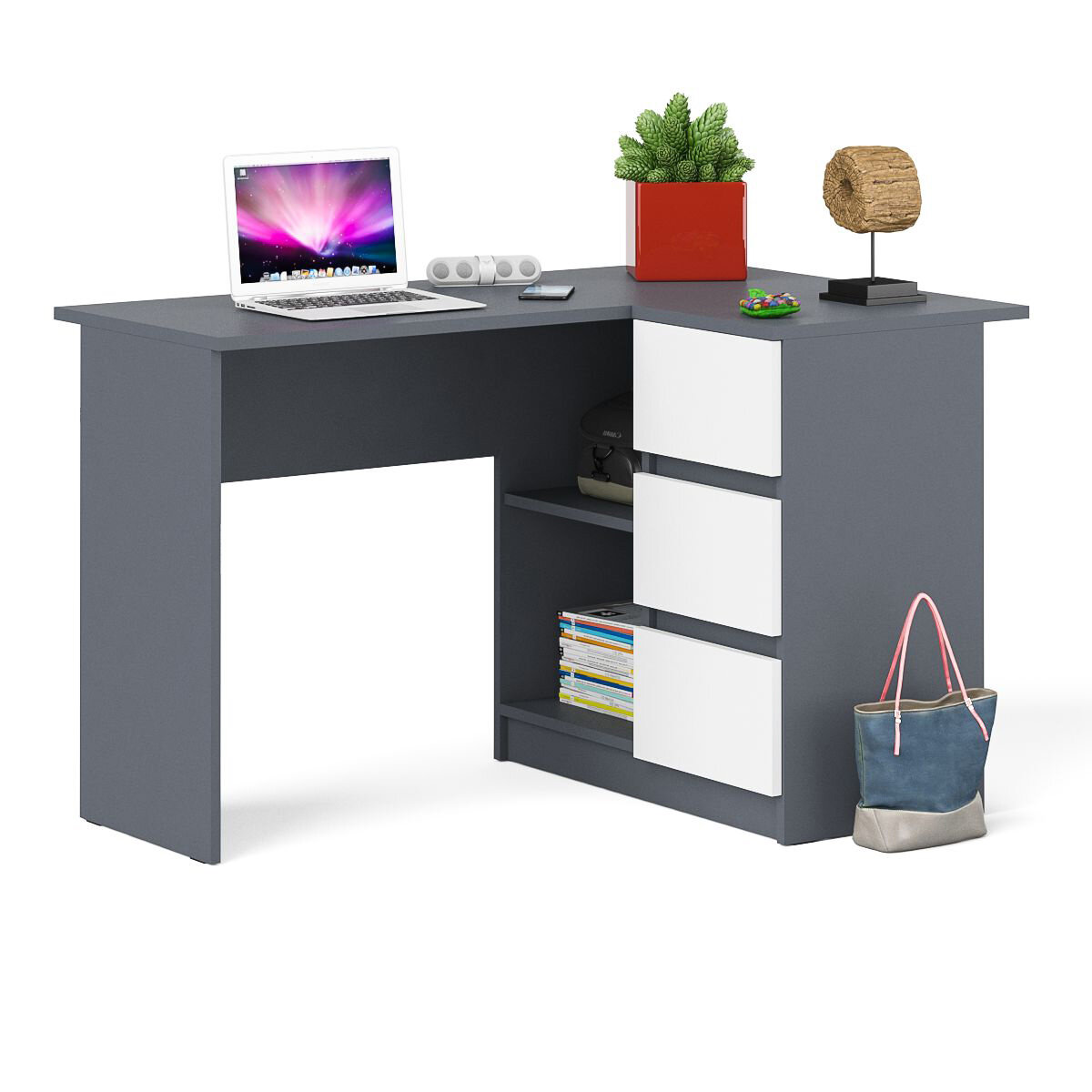 Угловой компьютерный стол Мори МС-16 левый графит/белый, 124,4х84,9х76,6 см, ящики слева, НЕ универсальная сборка