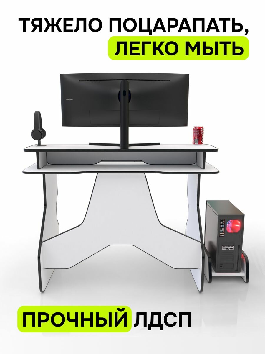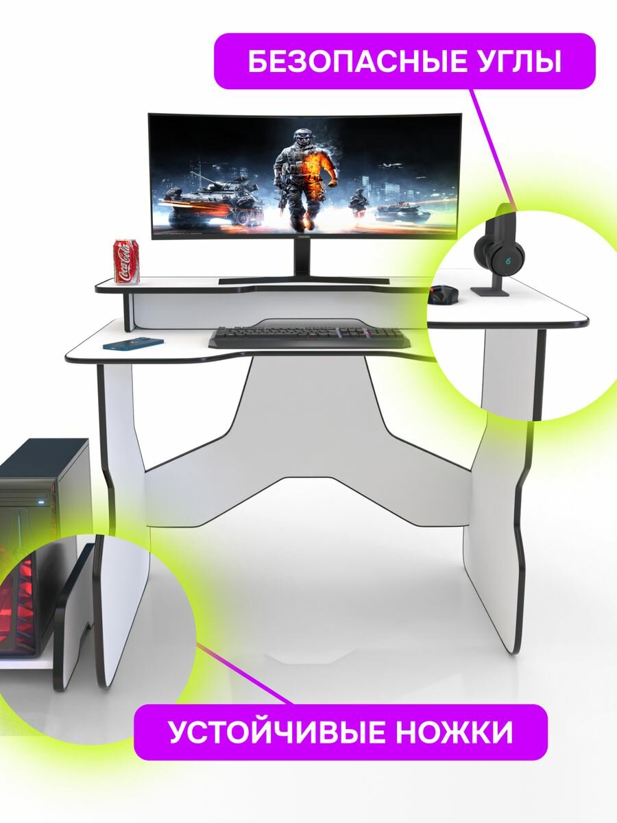 Купить Игровой компьютерный стол для геймера белый с черной окантовкой с полкой под монитор 106х73х75
