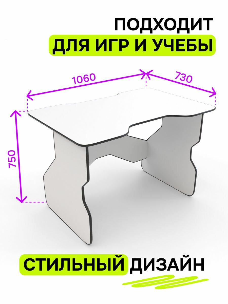 Игровой компьютерный стол для геймера белый с черной окантовкой 106х73х75