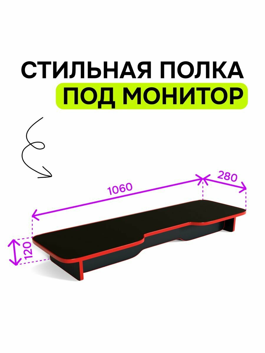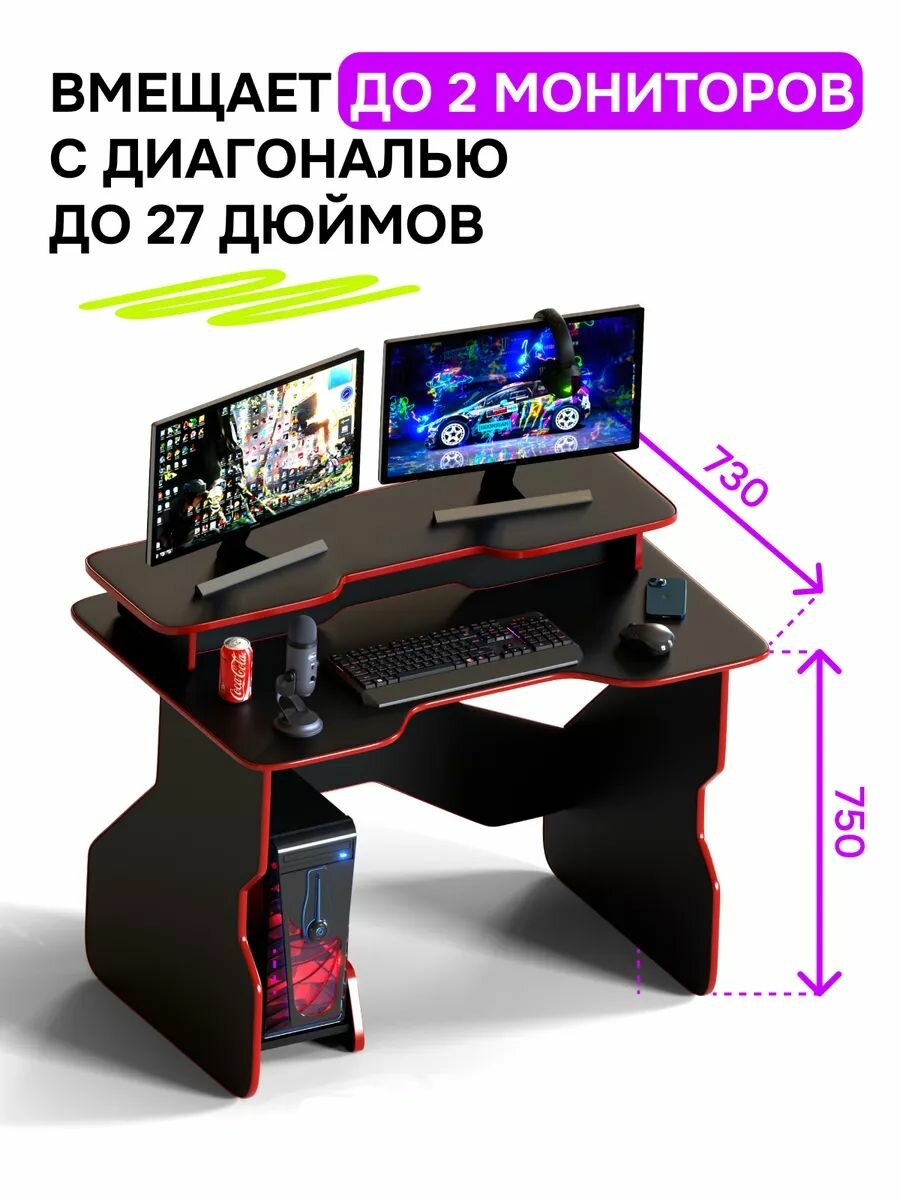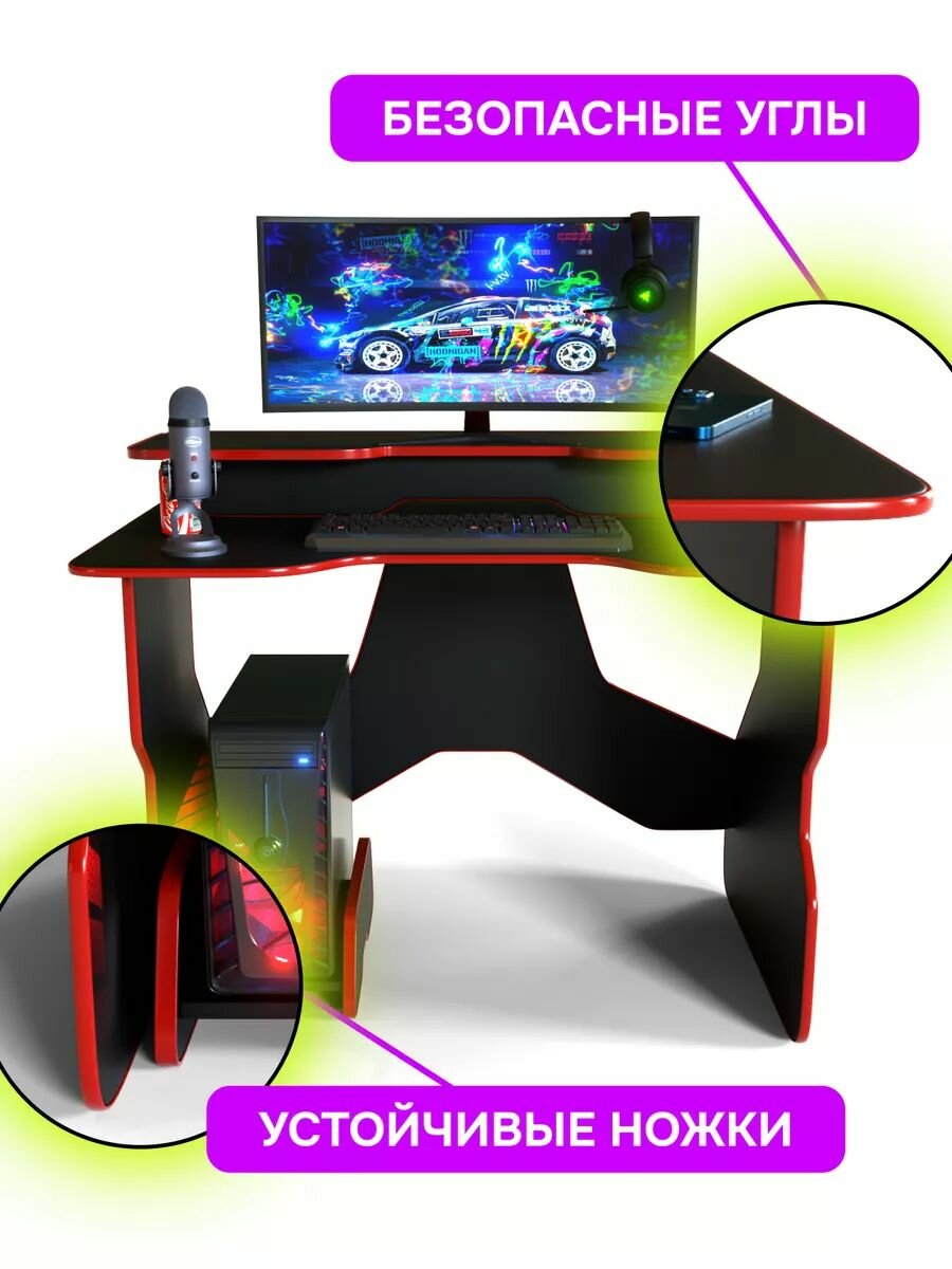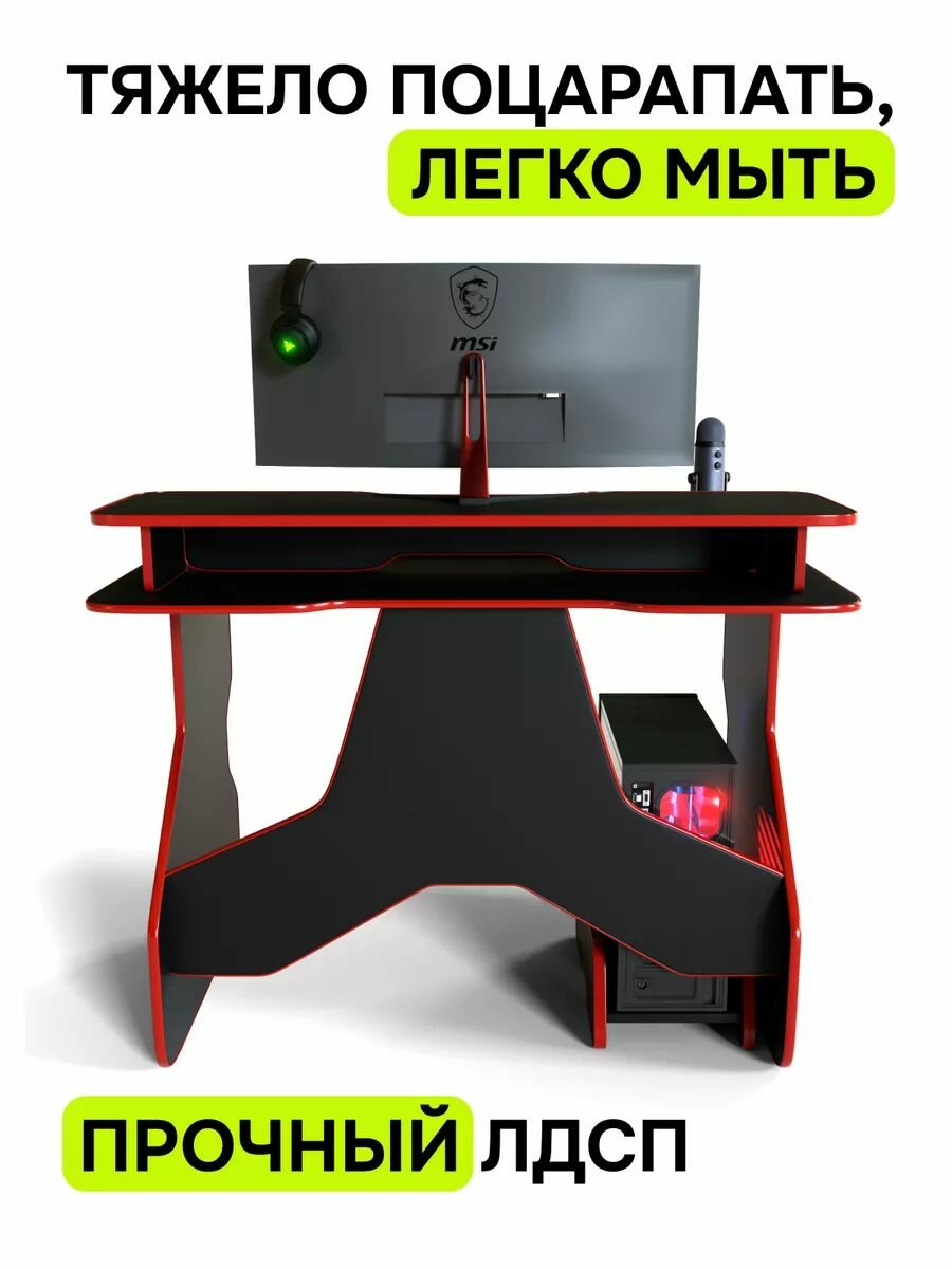 Купить Игровой геймерский стол для компьютера черный с красной окантовкой с полкой под монитор 106х73х75