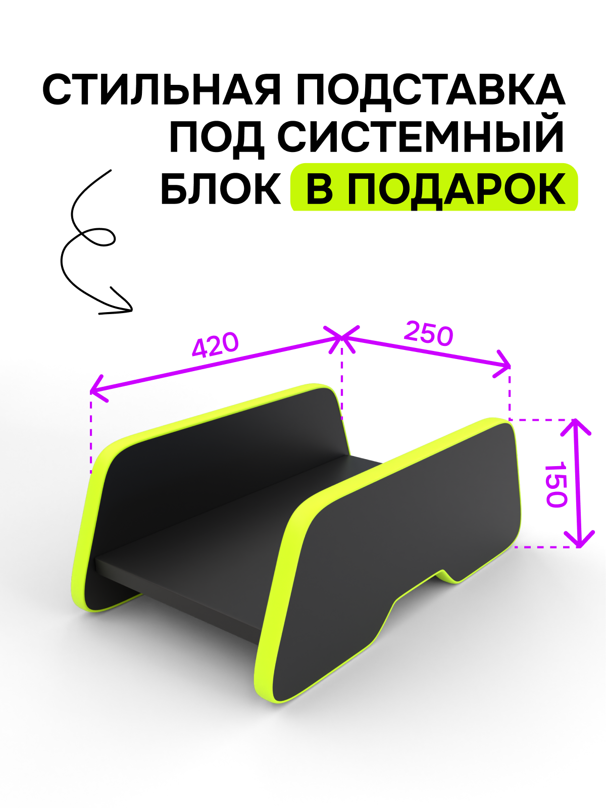 Купить Игровой компьютерный стол для геймера черный с кислотно желтой окантовкой с полкой под монитор 106х73х75