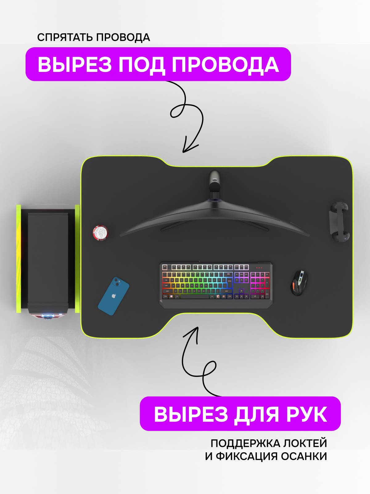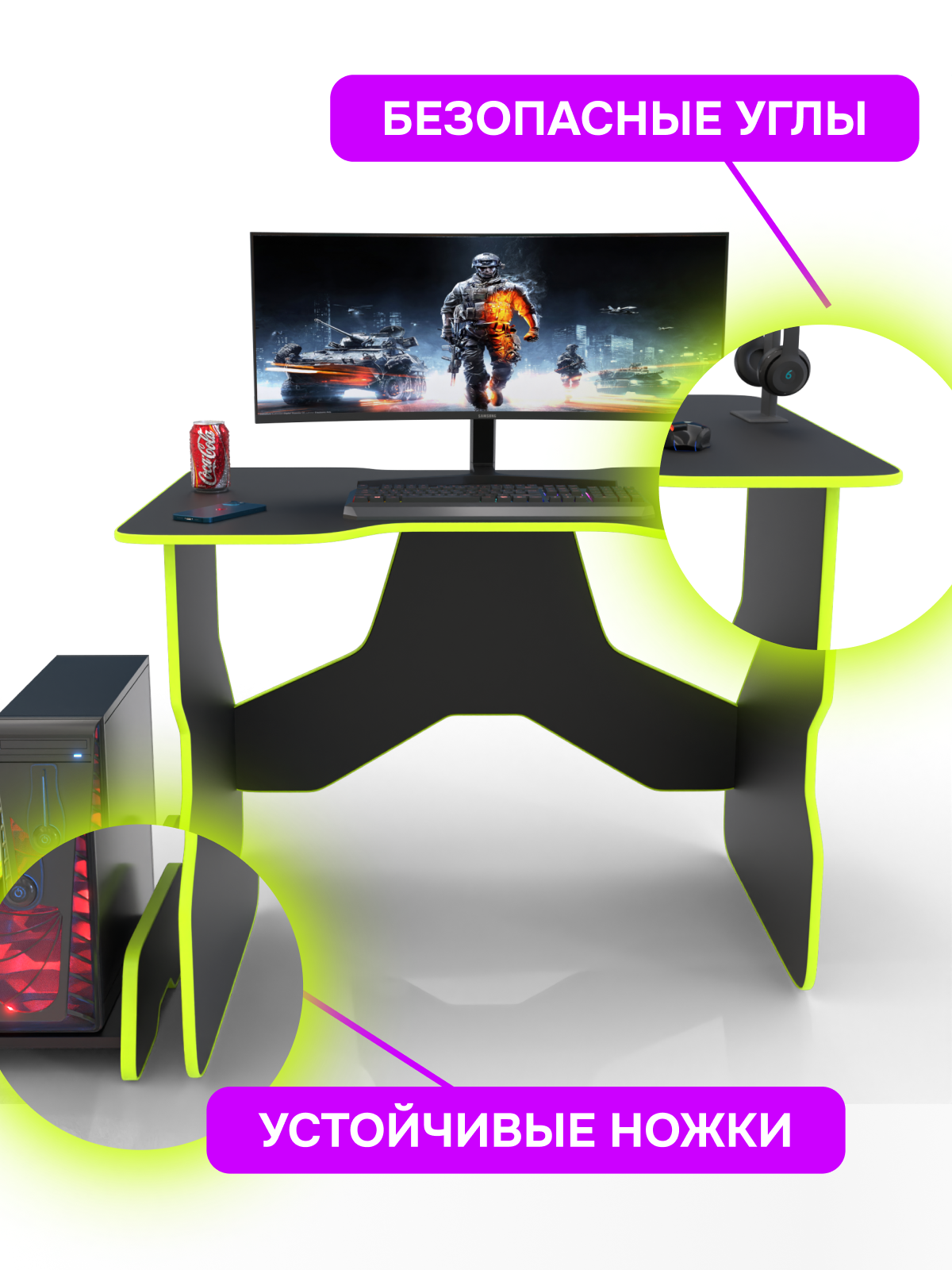 СохранитьИгровой компьютерный стол для геймера черный с кислотно желтой окантовкой 106х73х75 интересное: