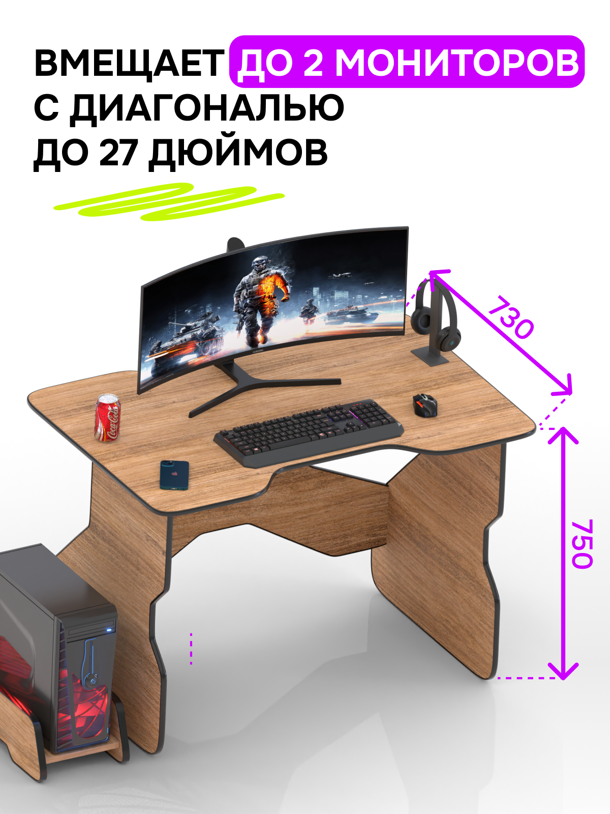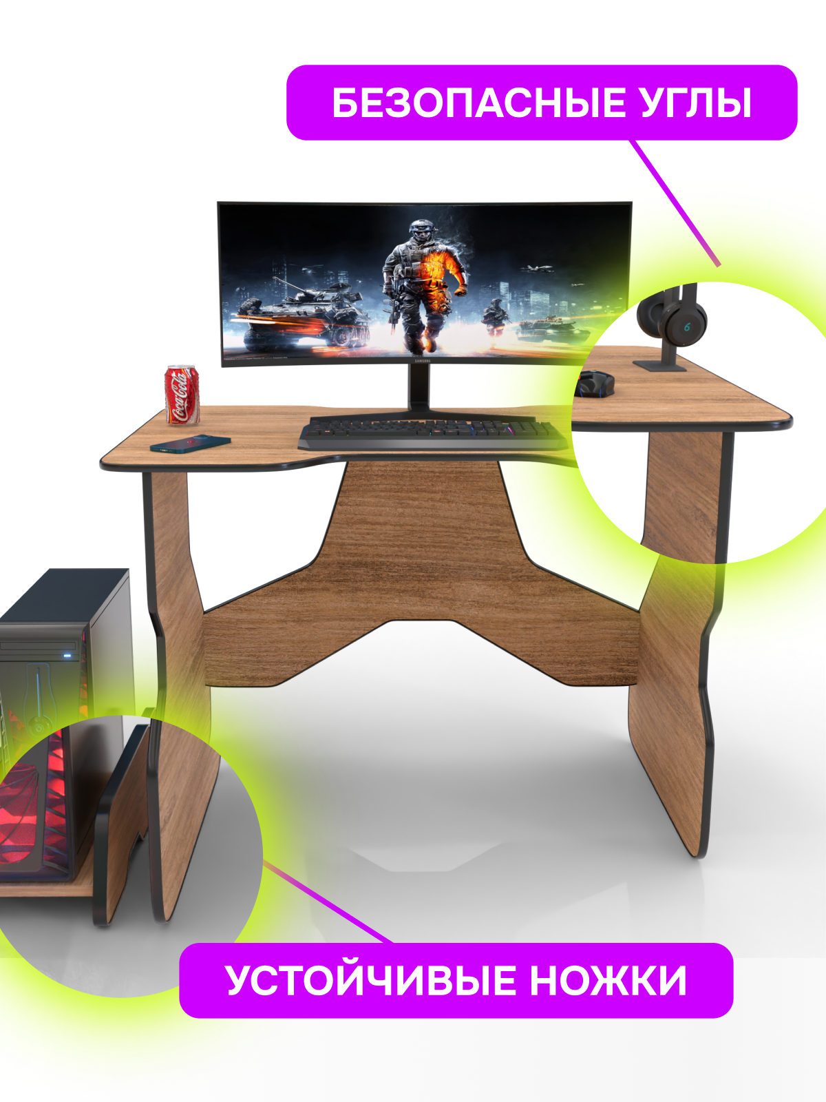 СохранитьИгровой компьютерный стол для геймера дерево столешница черный кант и дерево ноги без полки 106х73х75 интересное: