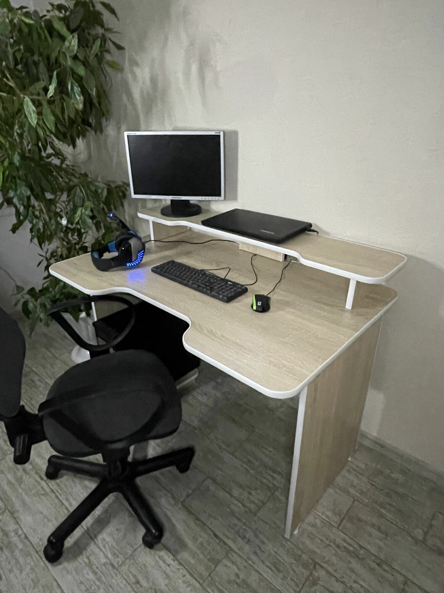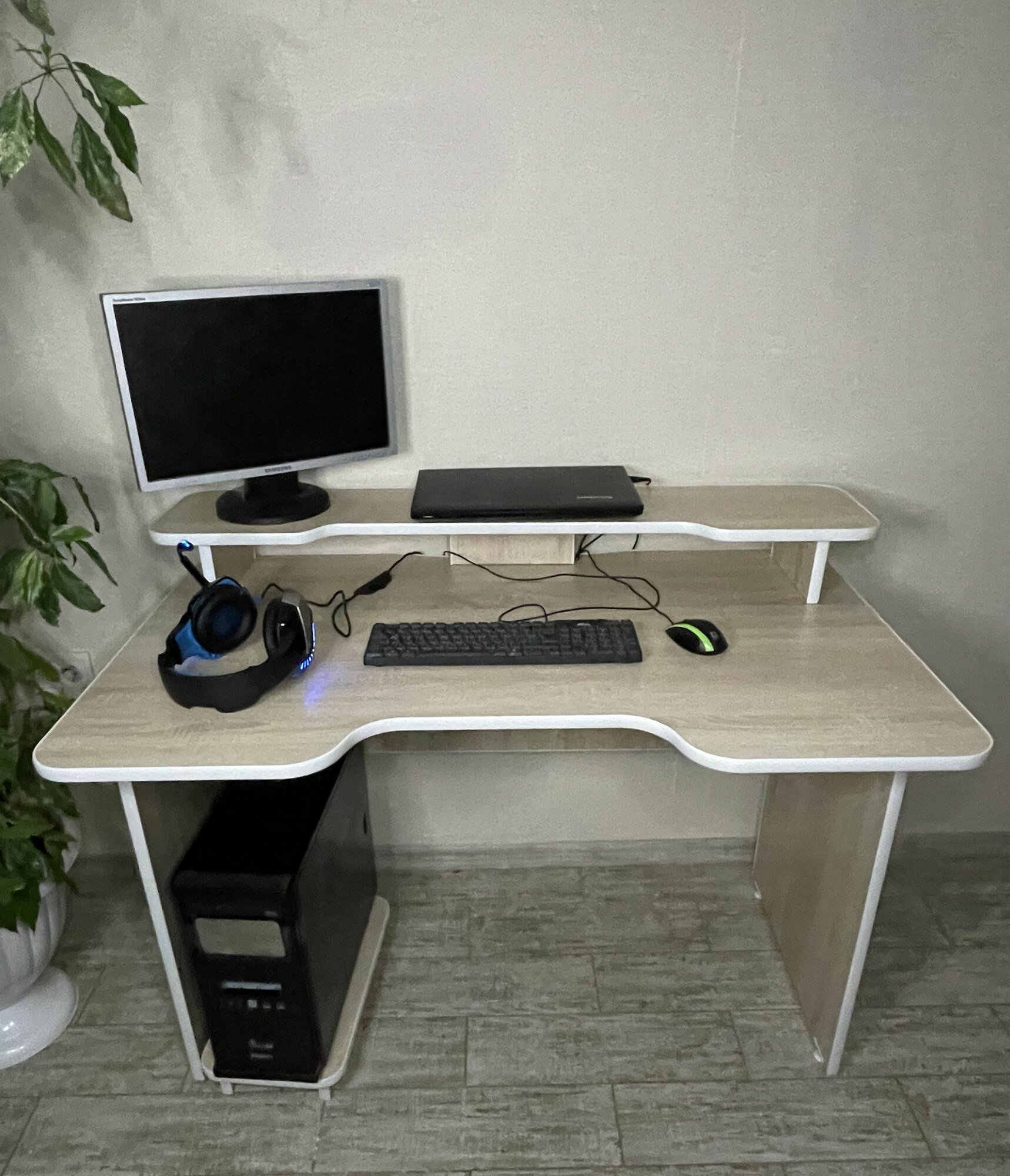 Компьютерный игровой(геймерский) письменный стол ADRENALINE дуб сонома/белый 120х75х78 с подставкой под монитор интересное: