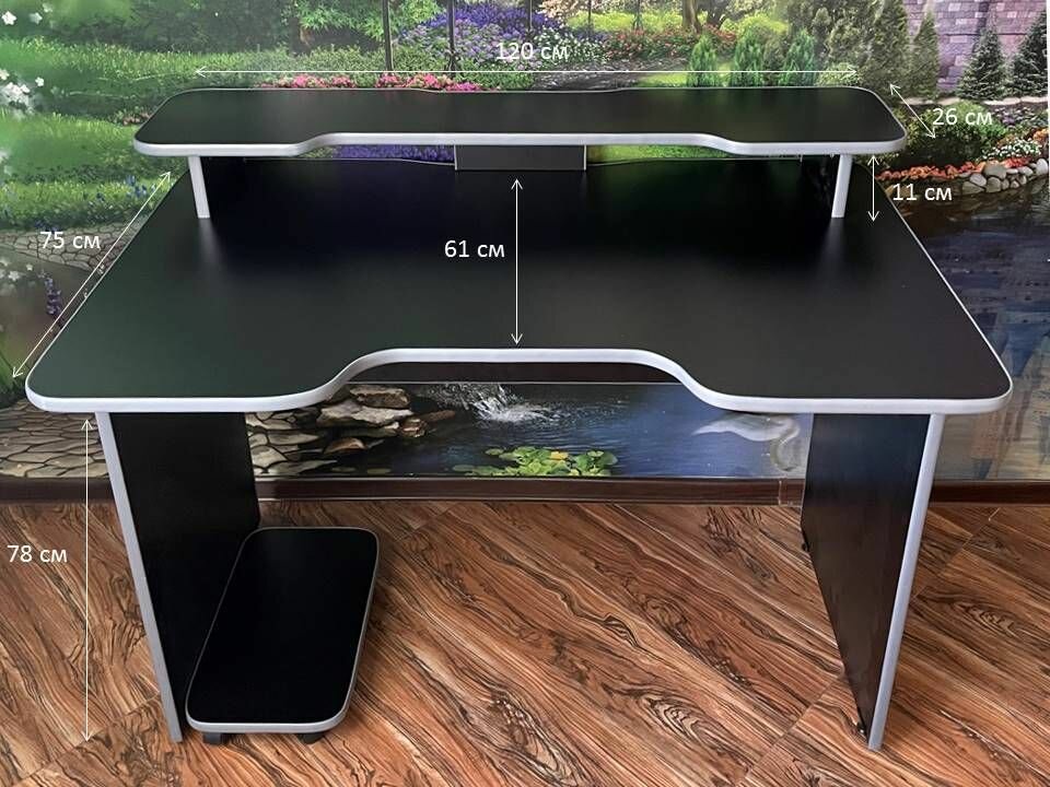 Компьютерный игровой(геймерский) письменный стол ADRENALINE черный/серый 120х75х78 с подставкой под монитор интересное: