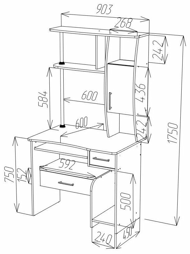 | Особенности | надстройка, отделение для системного блока, полка для клавиатуры, полка для принтера, с тумбой, с ящиком для хранения |