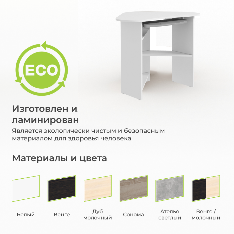 СохранитьСтол компьютерный БонМебель КС-800 угловой, белый + полочка Д/клав, 80х80х75 см интересное: